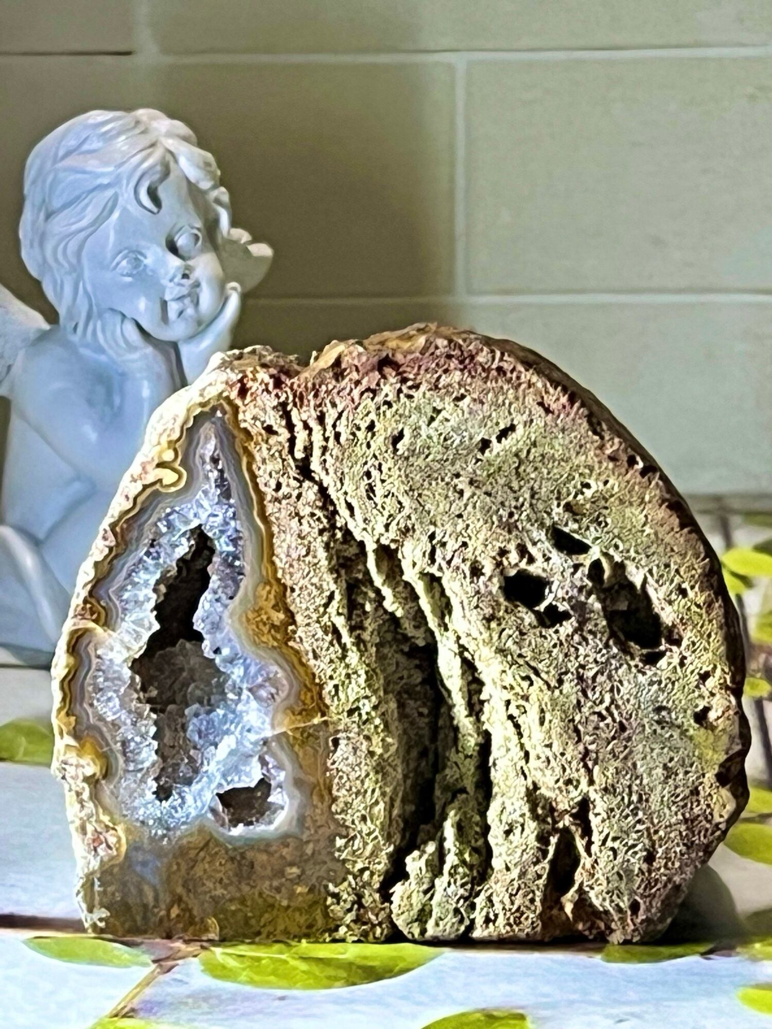 母岩に埋まった状態の瑪瑙(アゲート)ジオードの置物です♬೨