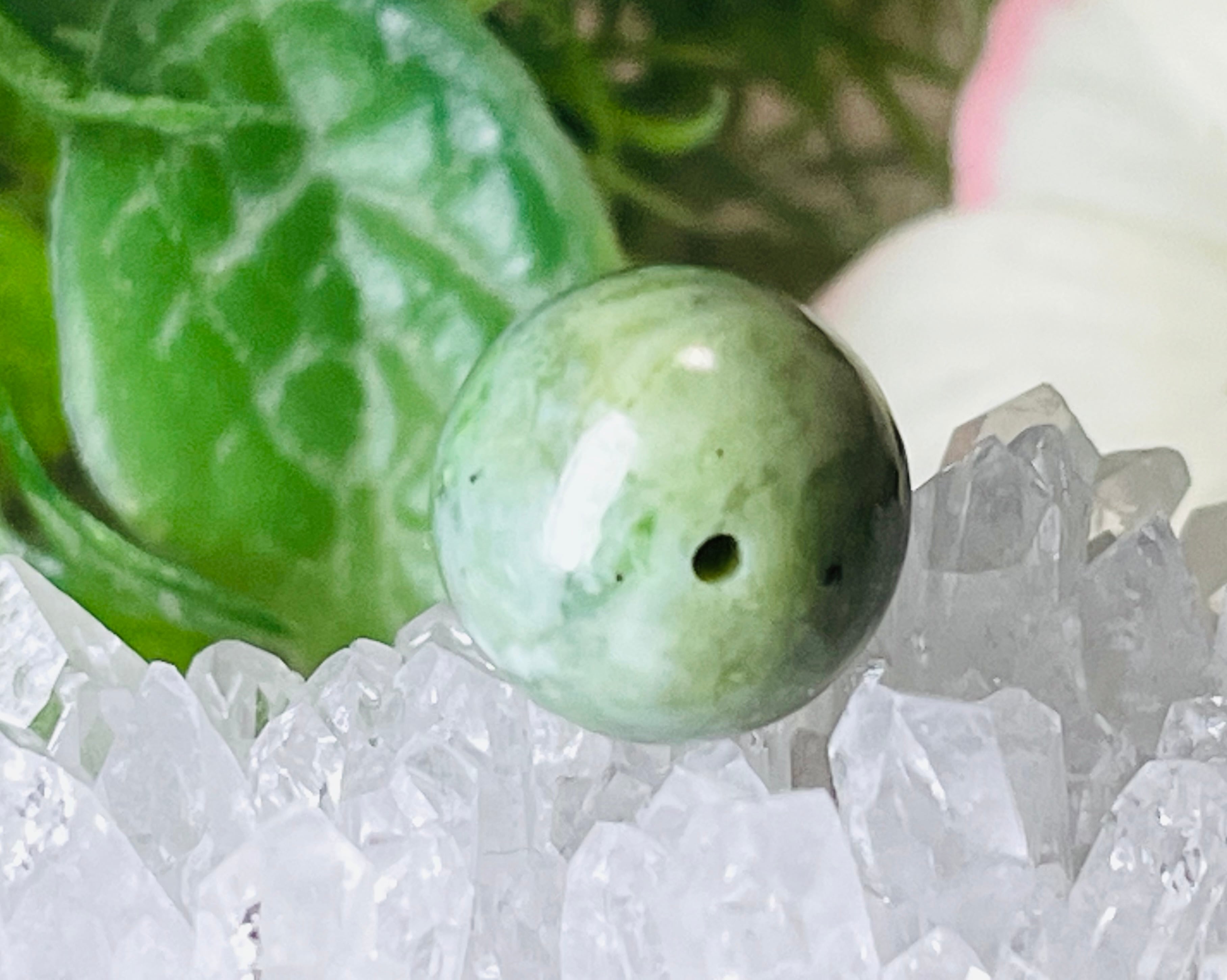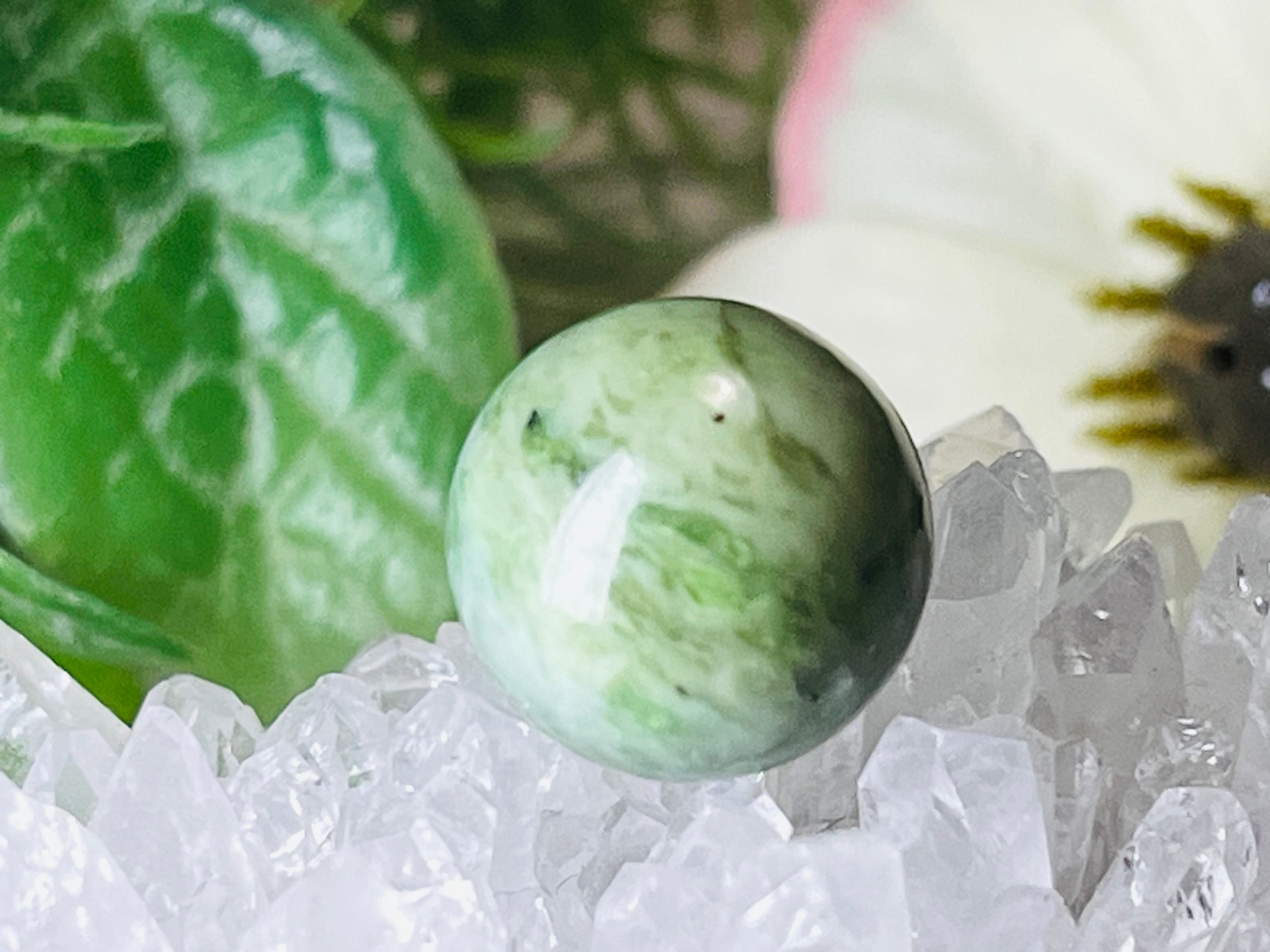 蓬色のマーブル模様の日高翡翠の穴あき丸玉です❁⃘*.゜