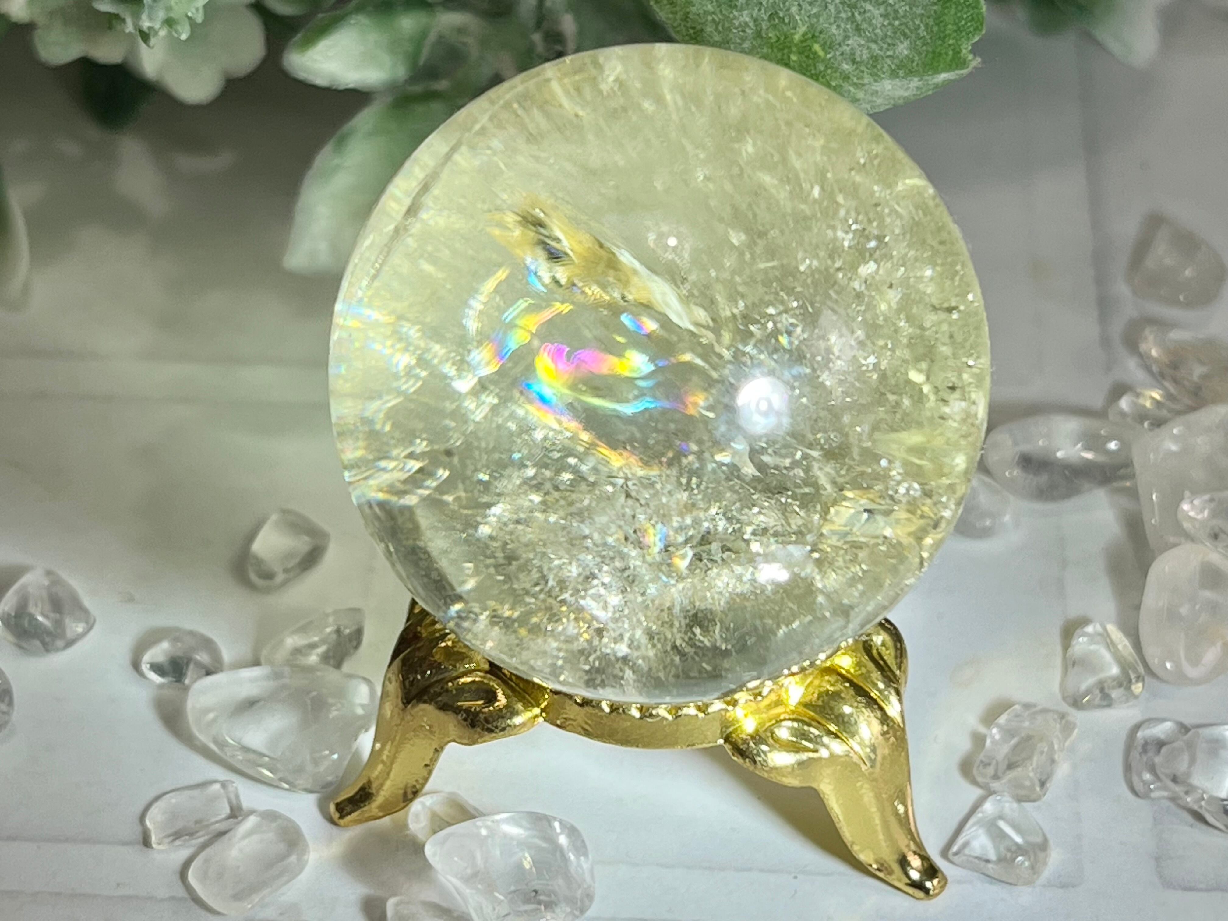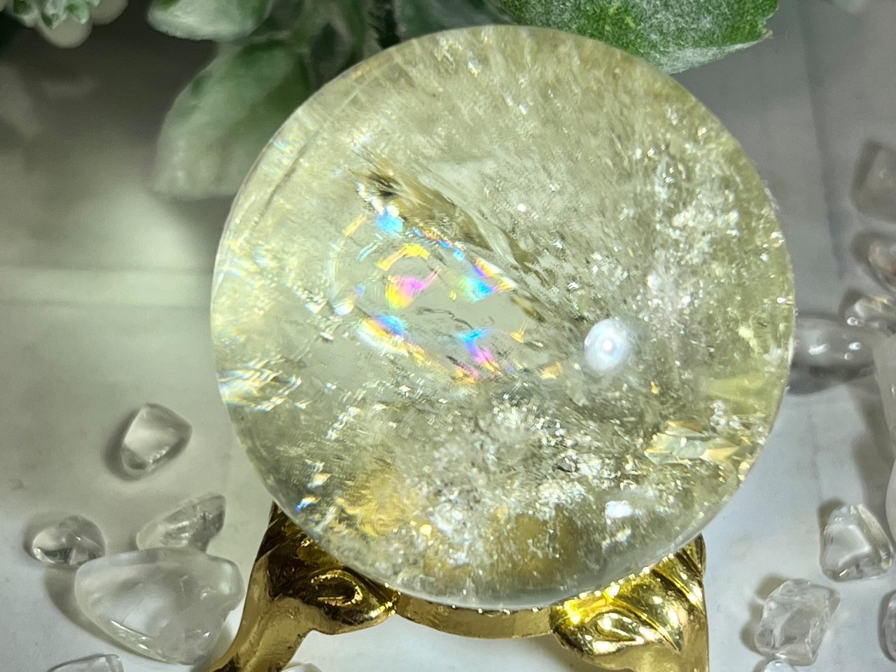 シトリンクォーツの至る所に美しい虹が入ったスフィアです✨