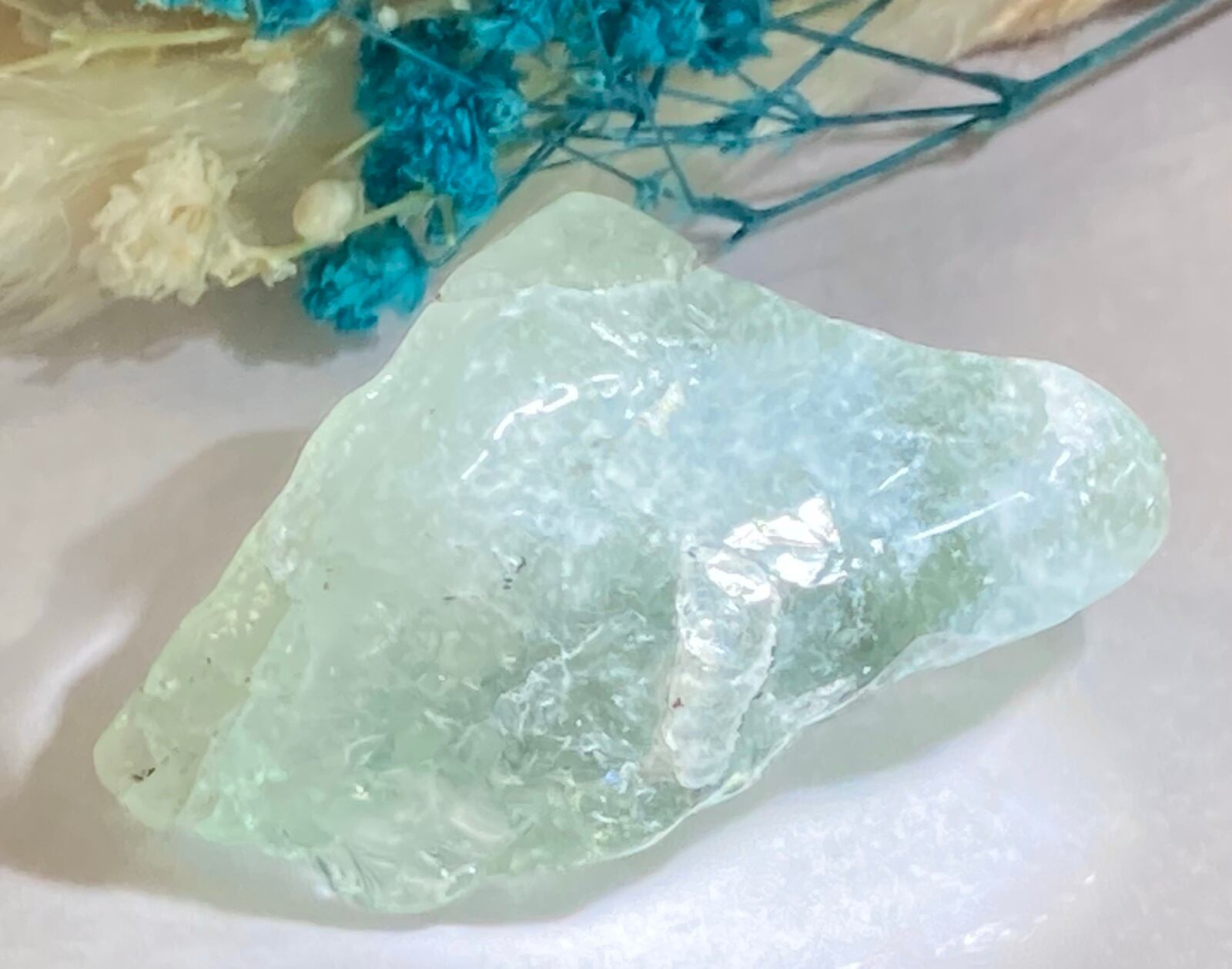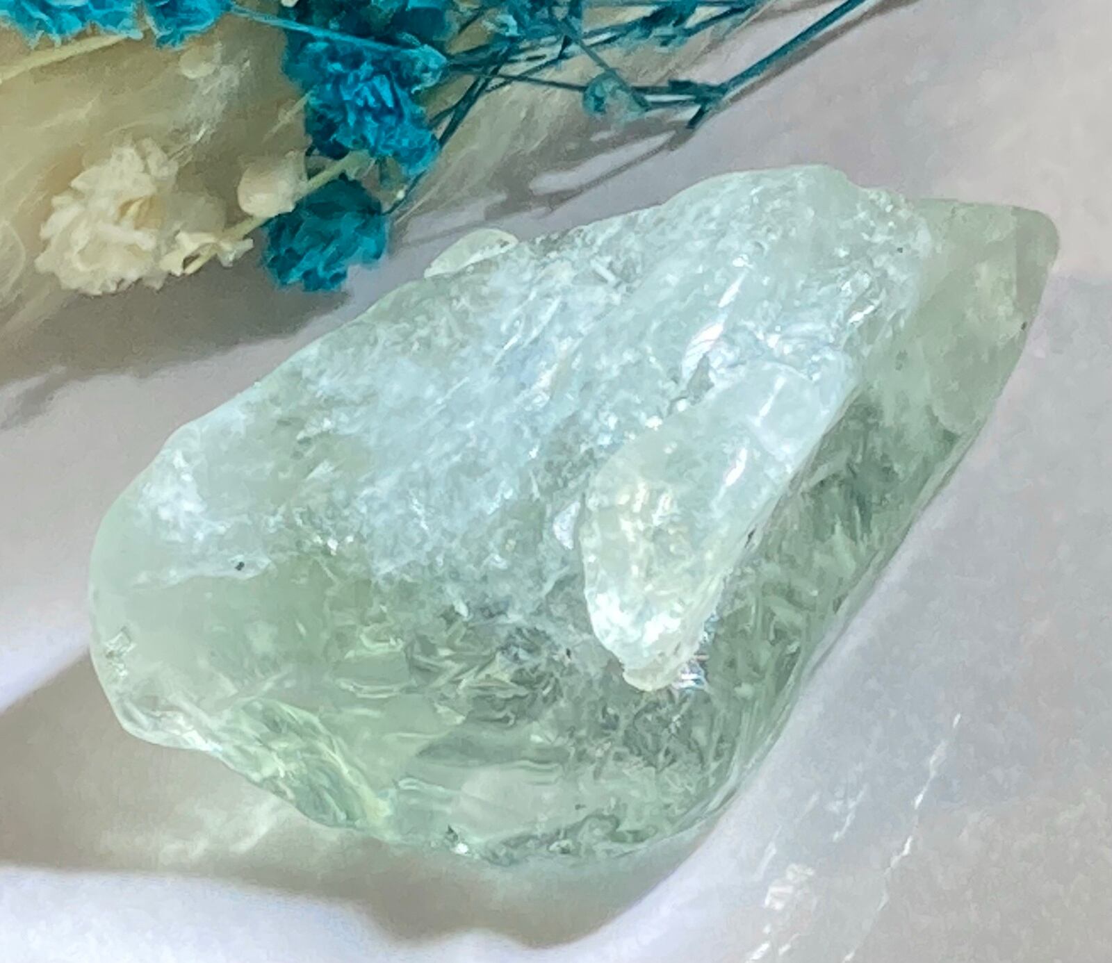 透明感があり、まるでゼリーのように明るめのグリーンが特徴のグリーンアメジスト(プラシオライト)のラフストーンです✨