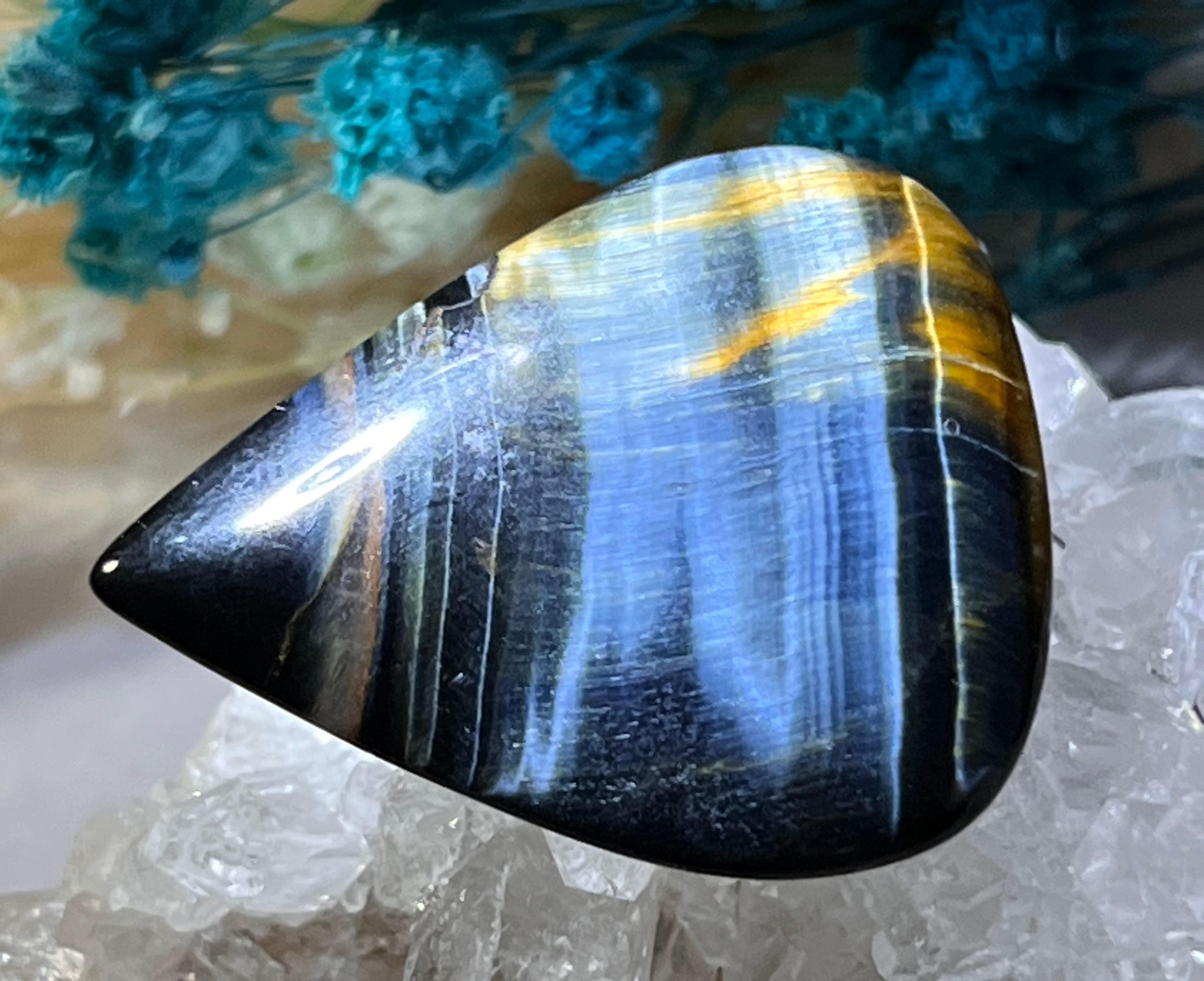 タイガーアイにあまり出回らないブルーのホークアイが混じりあったタイプのミックスタイガーアイ(混虎目石)のルースです˚✧₊⁎