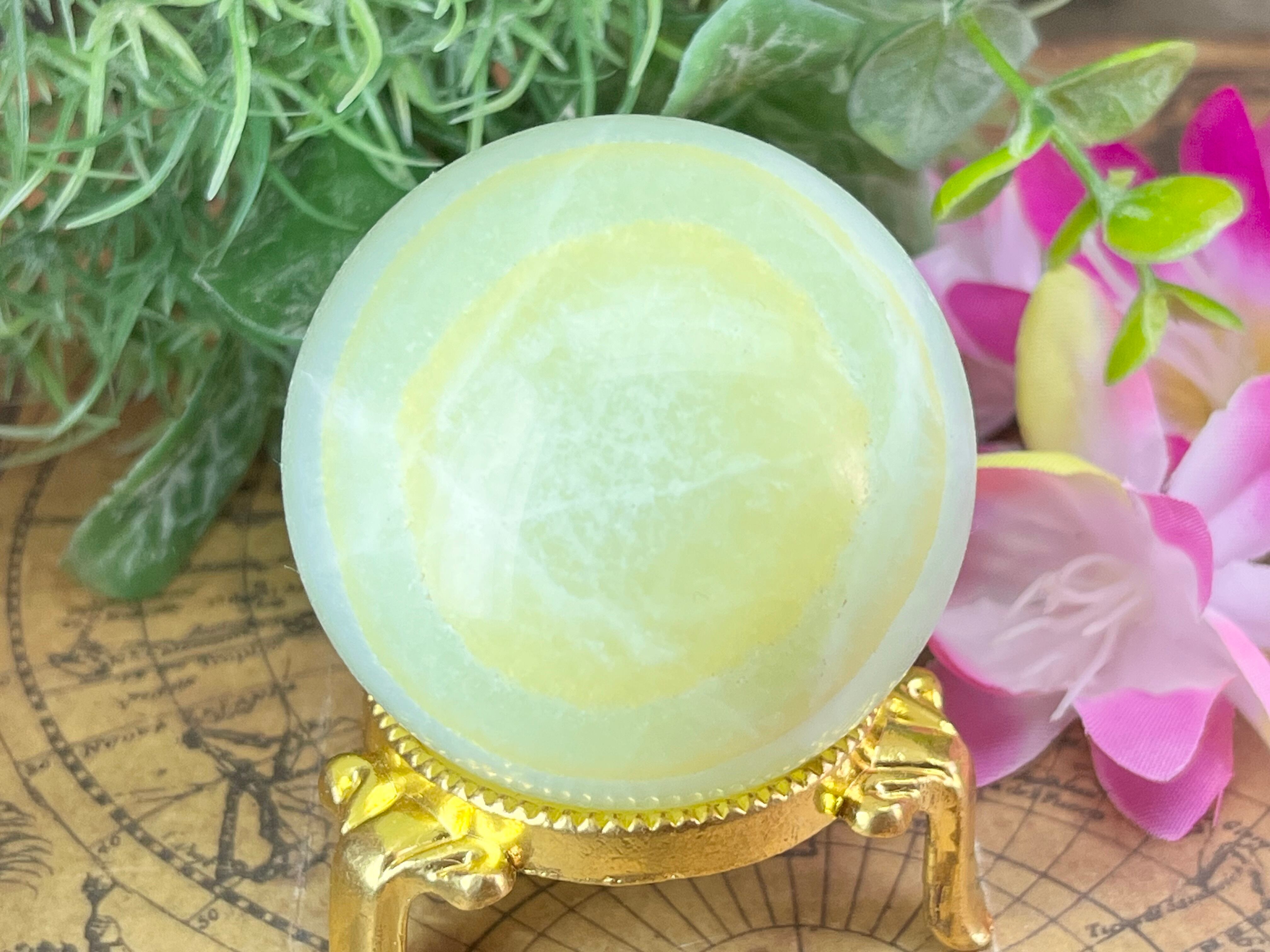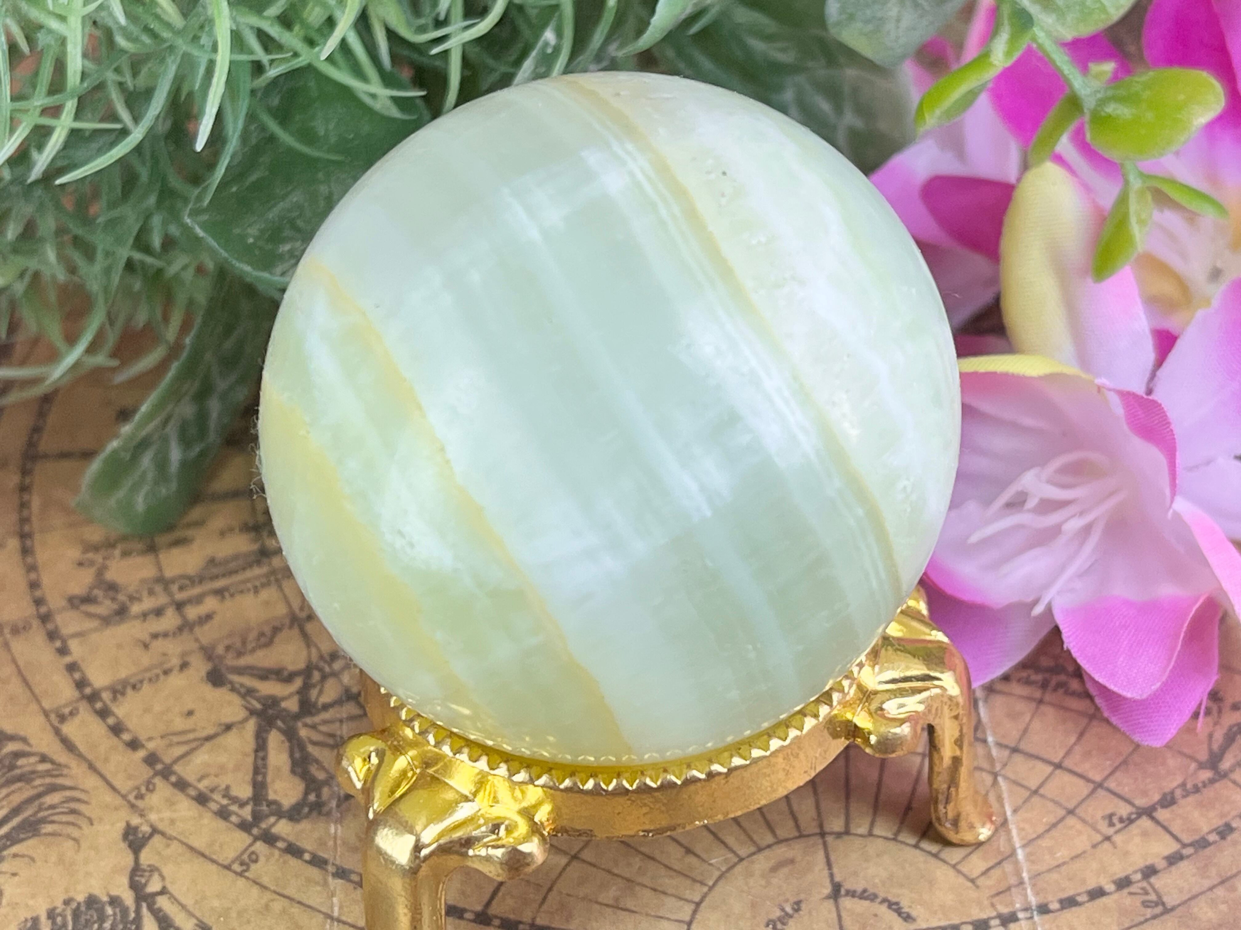 爽やかなライムグリーンカラーのカルサイト スフィアです✨