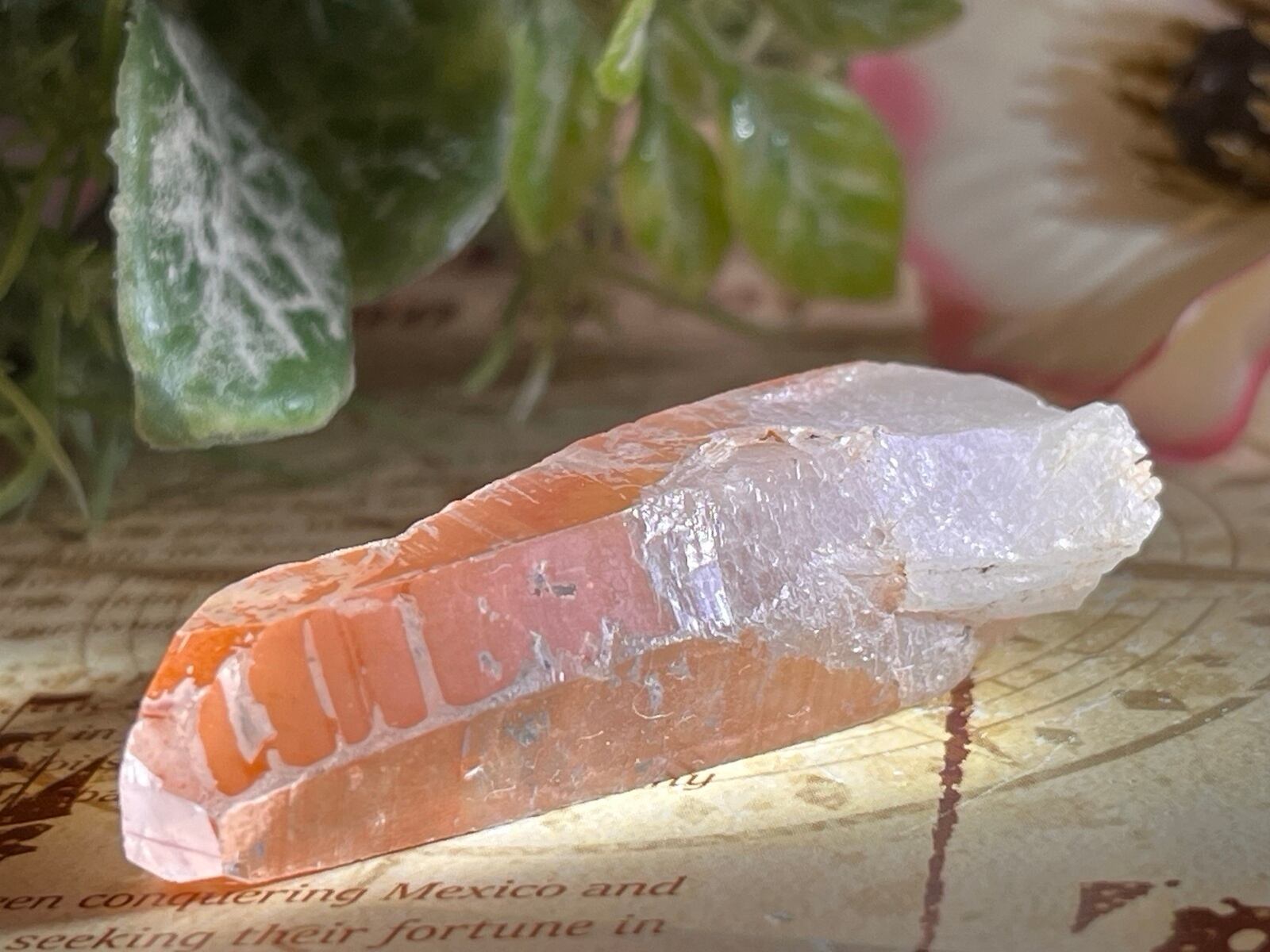 多くのカラークリスタルは、内包物の影響によって赤色に発色したり、緑色に発色したりしますが、このタンジェリンクォーツは、水晶の表面に付着したものの影響でオレンジ色に発色しており、鉱物学的にもとても特徴的な石だと言われています。