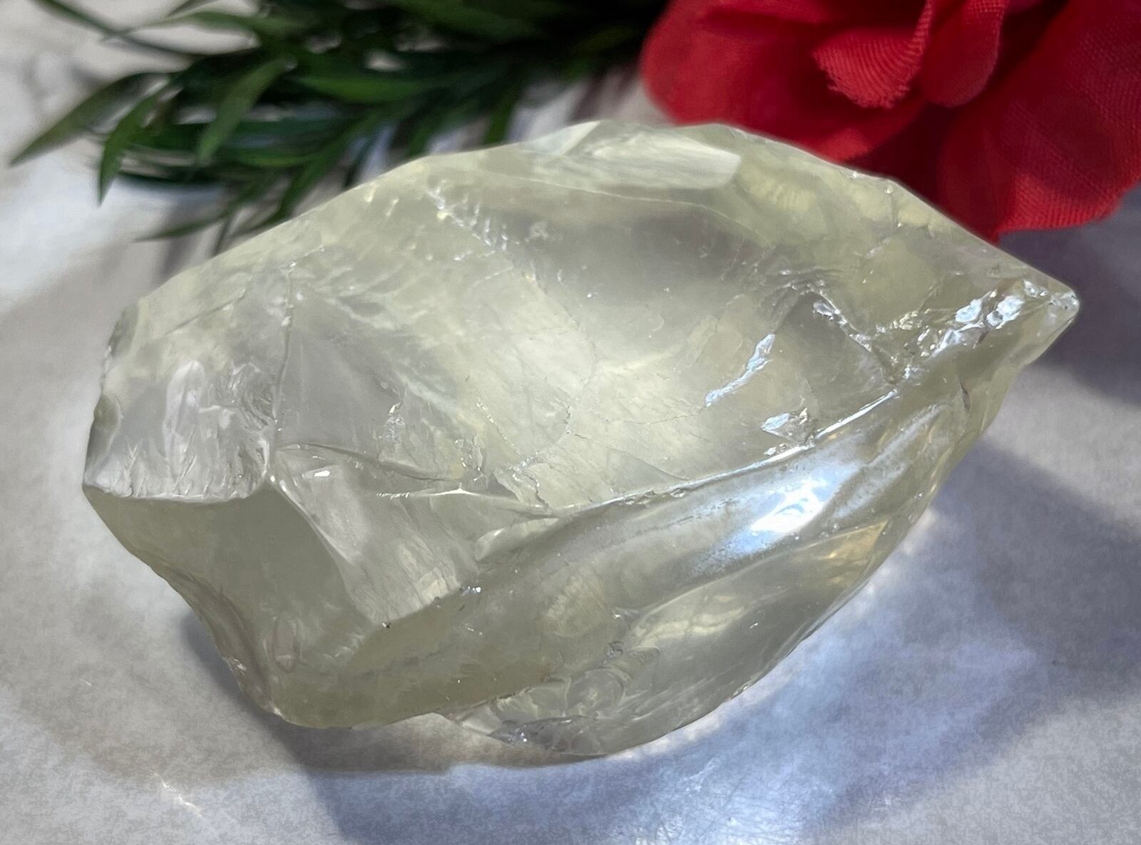 通常の水晶の結晶形ではなく塊状で産出され、アルミニウム・ニッケル・銅・バリウム等を含み『変容、変革、変化』の石といわれている。