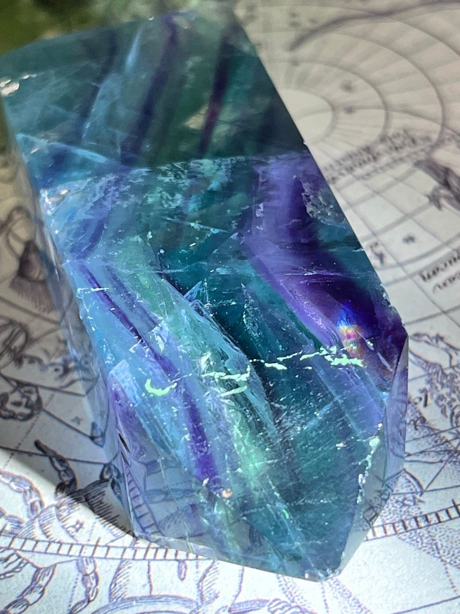 グリーンとパープルが綺麗に調和したフローライトポイントになります✨