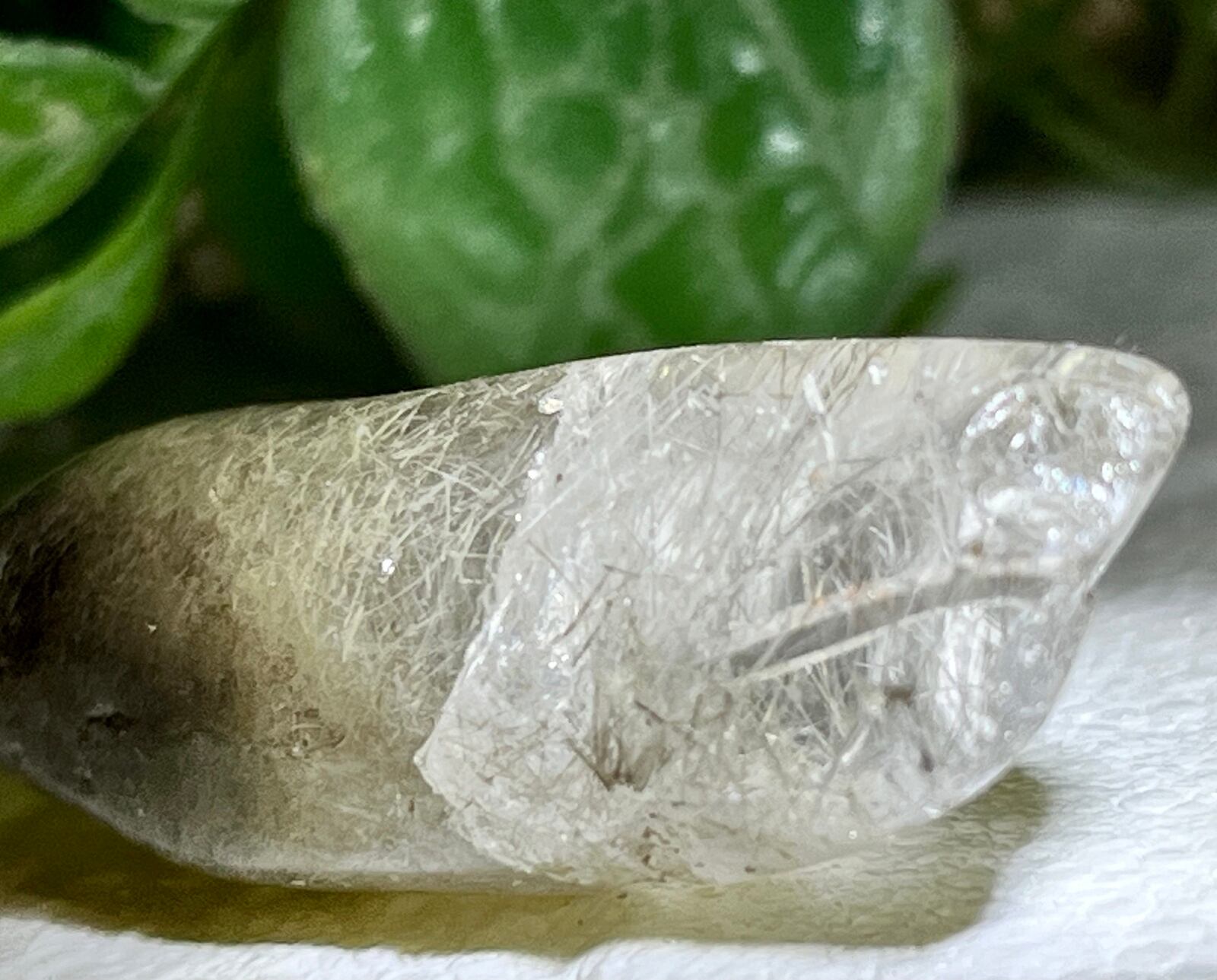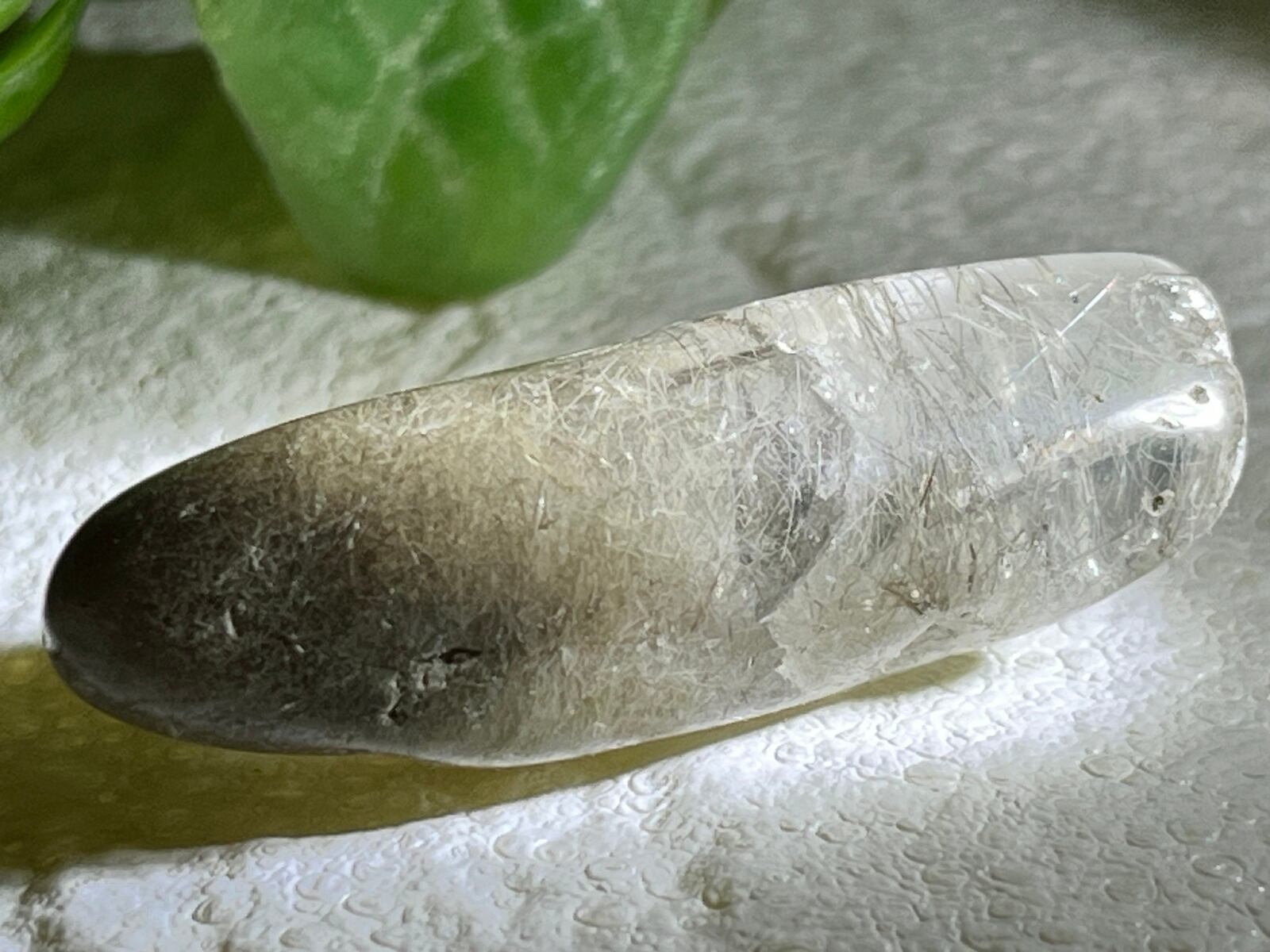 幻想的なモスグリーンのふわふわルチルがみっちり内包されているガーデンクォーツのタンブルです✨
