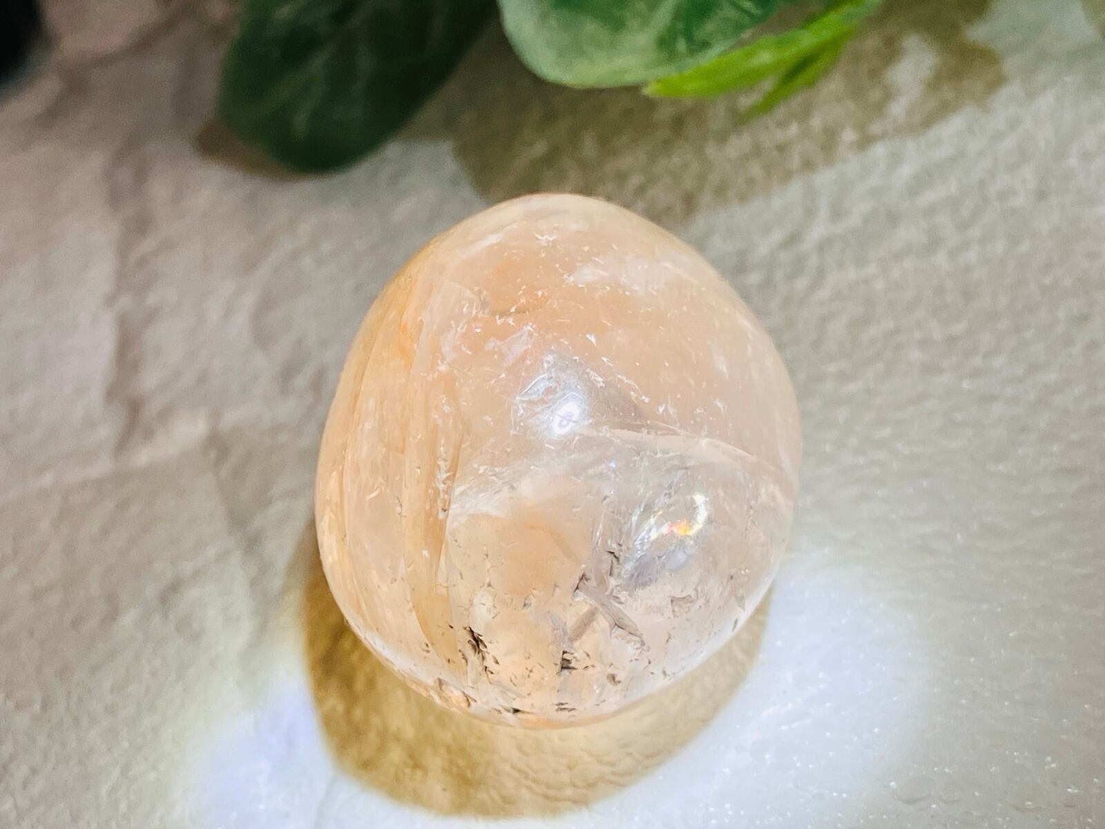 柔らかな夕焼けのヴェールのようなお色が特徴的なヘマタイトインクォーツタンブルです✨