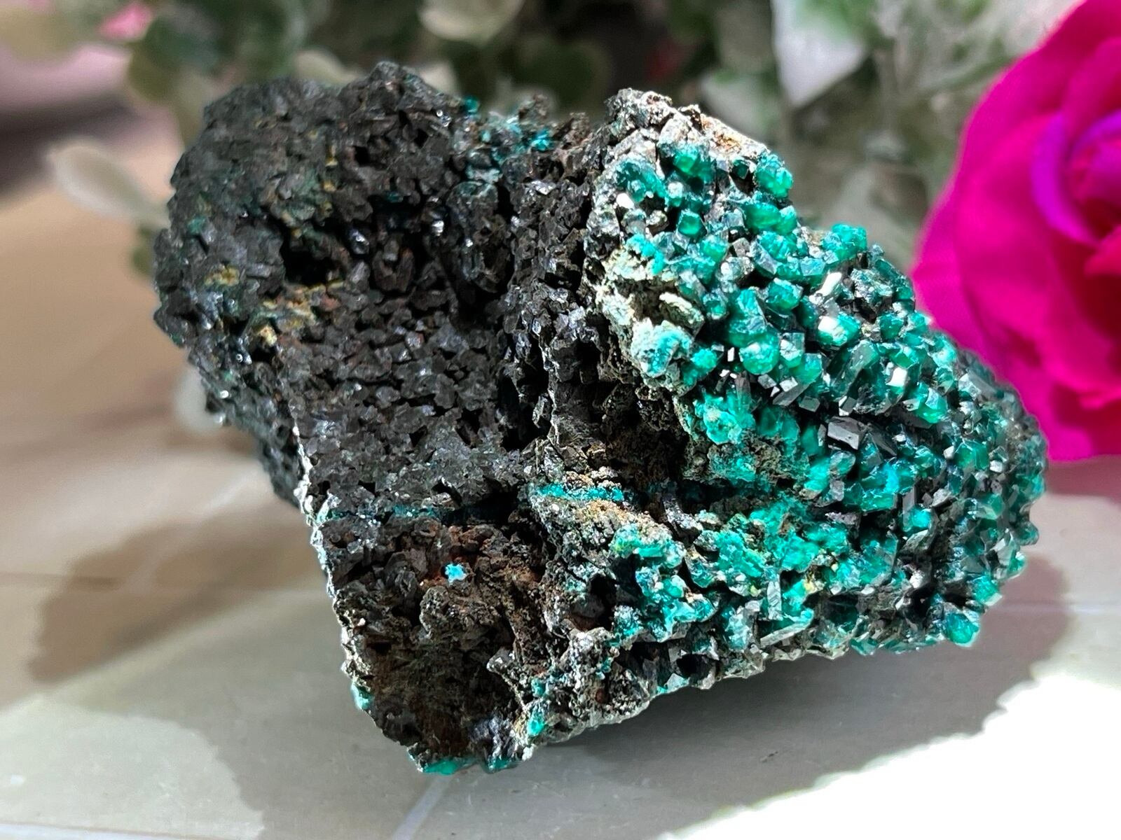 約6cmと大ぶりサイズで深く鮮やかなグリーンが印象的なダイオプテーズのクラスターです✨