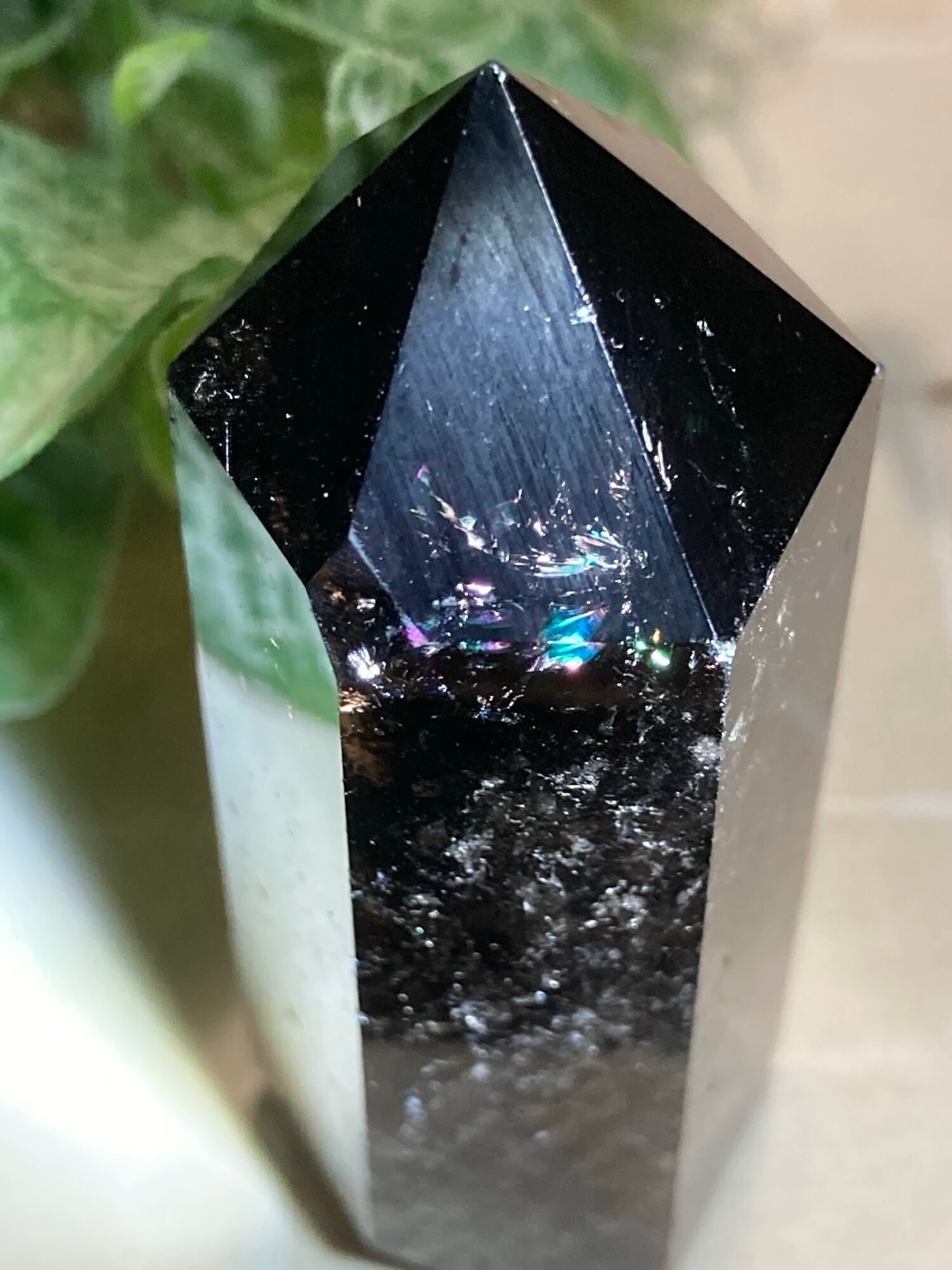 煙水晶 スモーキークォーツ レインボー ポイント ポリッシュ 原石