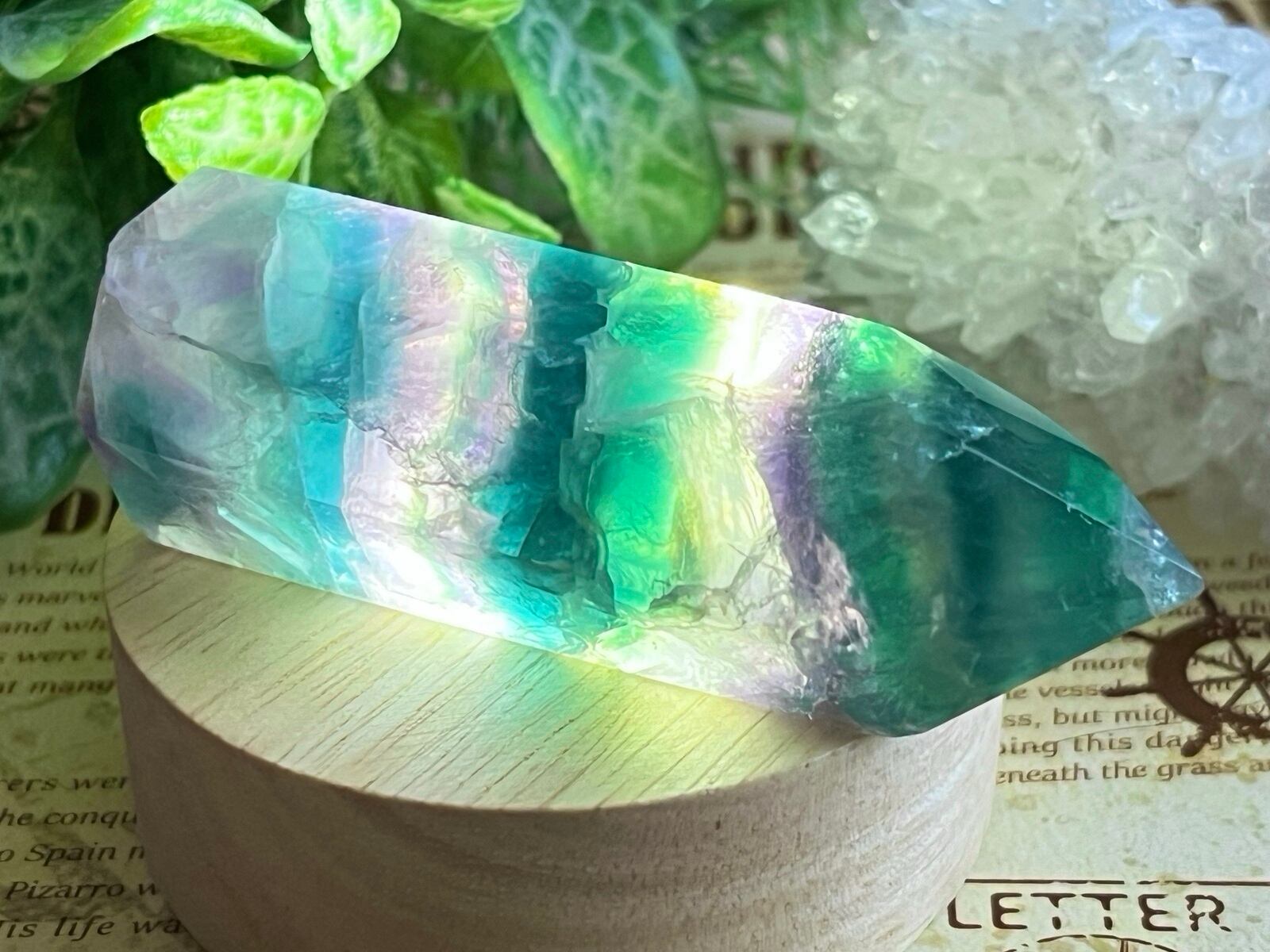 グリーンベースに青紫のストライプが映え、柔らかなグラデーションが美しいマルチカラーフローライトのポイントです❁⃘*.゜