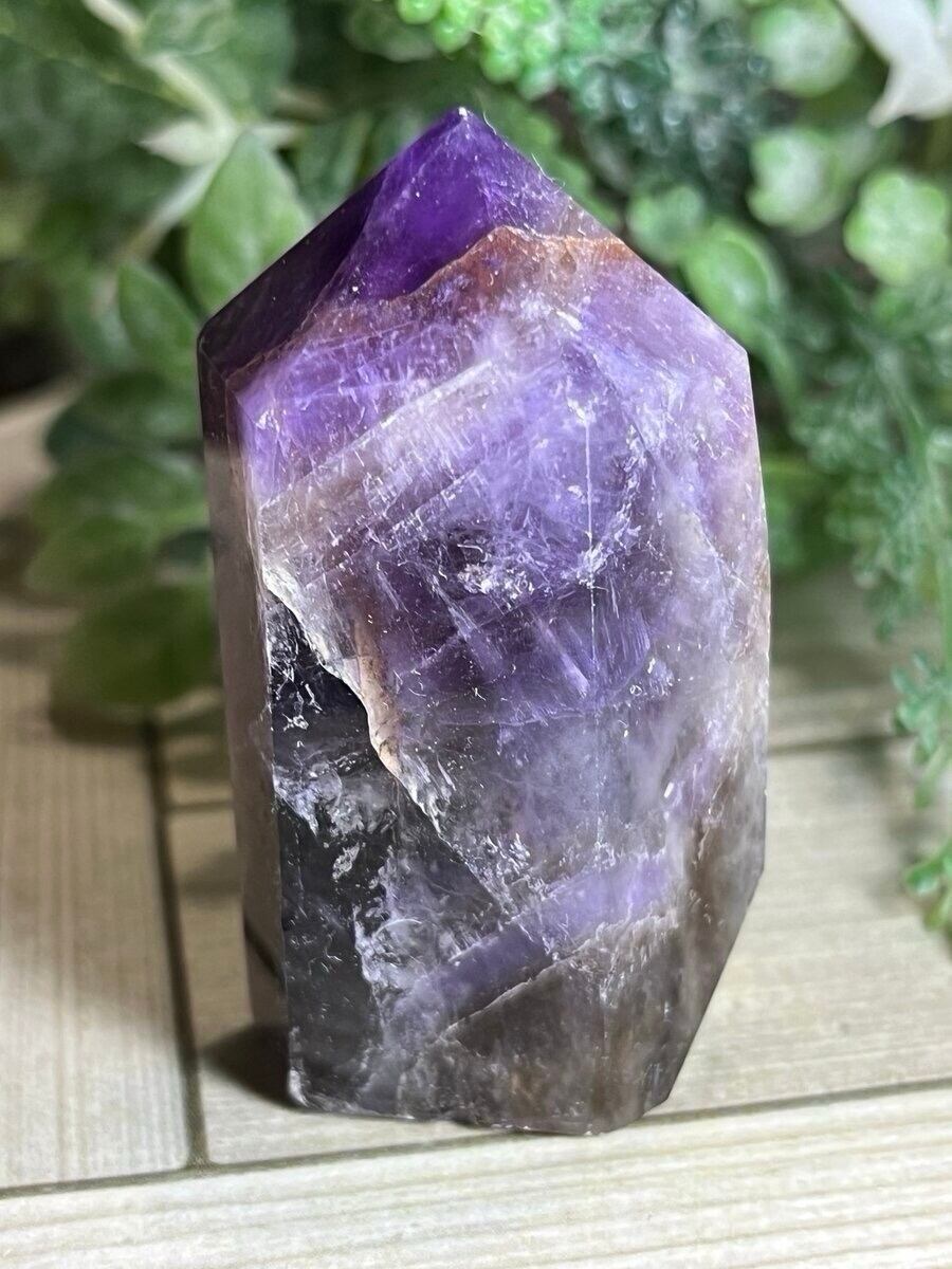 アメジストに一部グレーのスモーキークォーツがミックスされたスモーキーアメジストのポイントです✨
