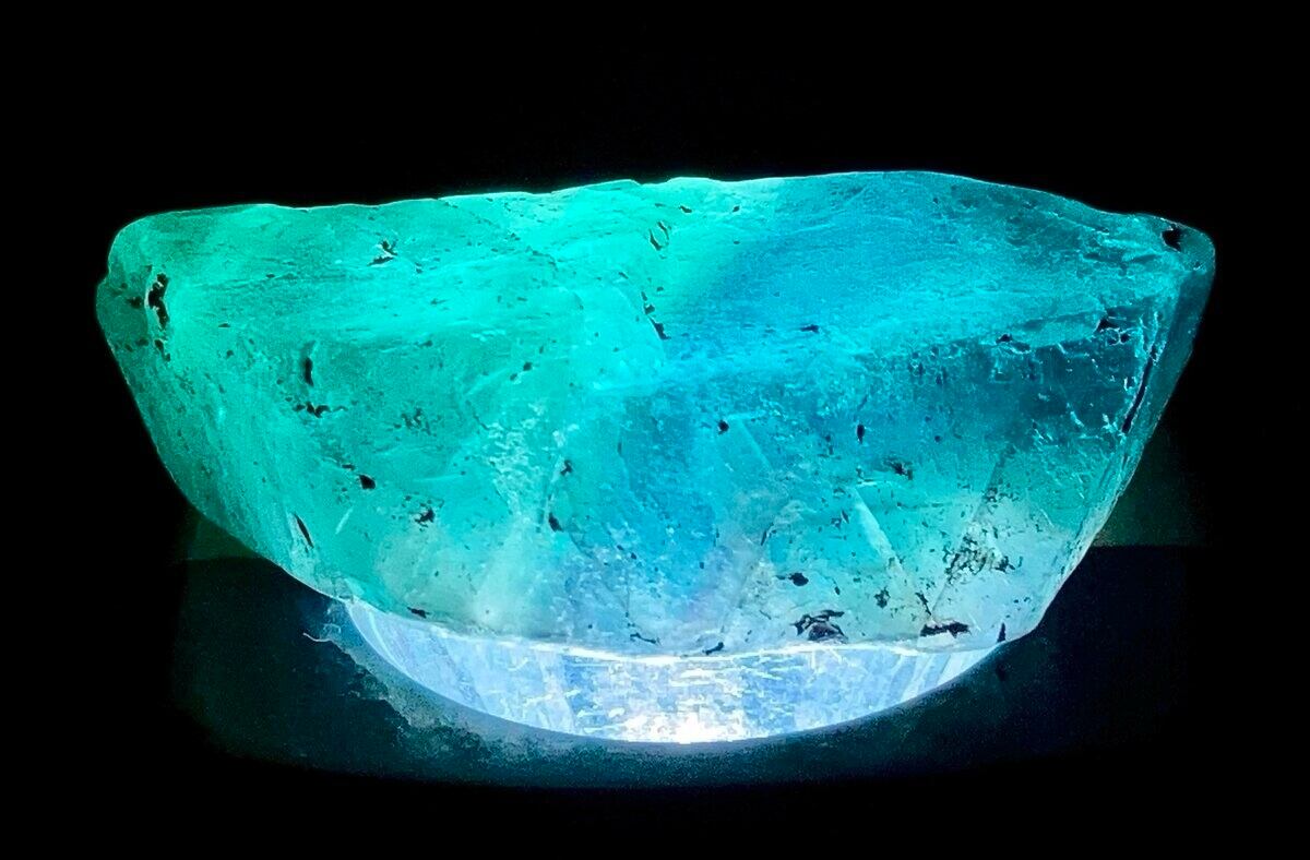 エメラルドグリーンとブルーのグラデーションが美しい、フローライトのバイカラーラフストーンです❁⃘*.゜