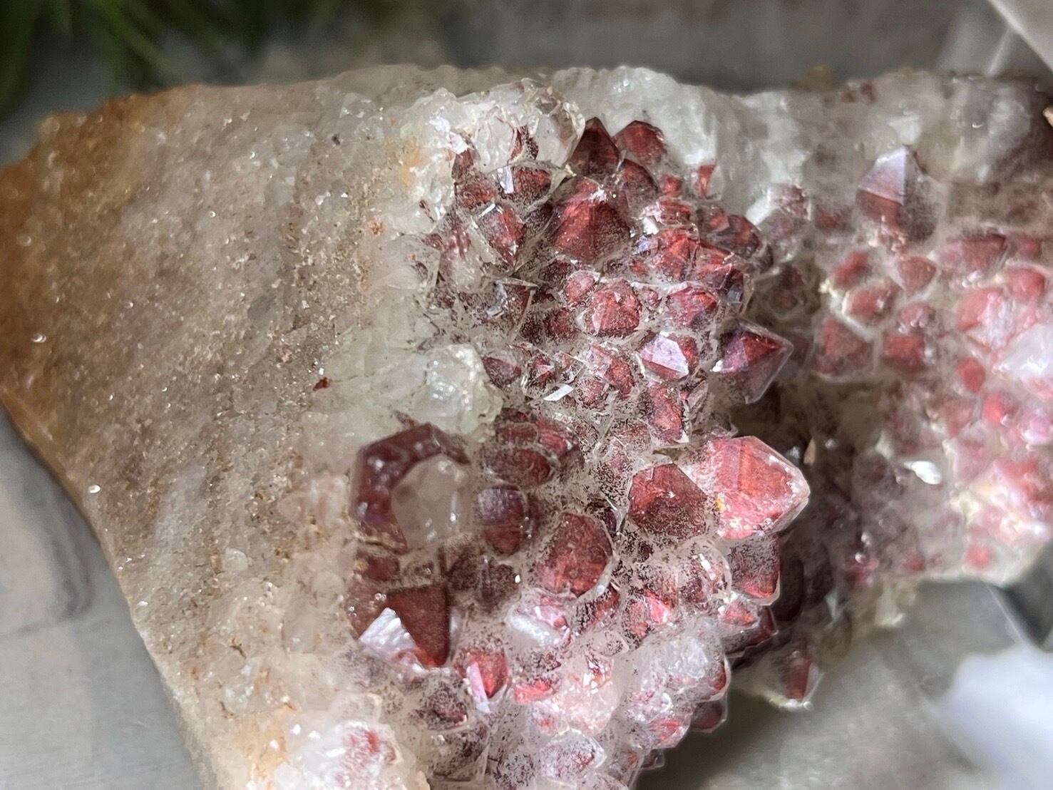 結晶が木苺のように可愛らしいストロベリークオーツの台座付きクラスターです❤︎