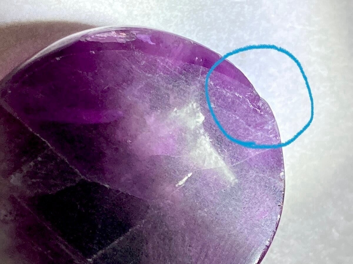 パープルベースで先端にほんのりグリーンが混ざった美しいフローライトの中にホワイトのインクルージョンの入ったルースです✨