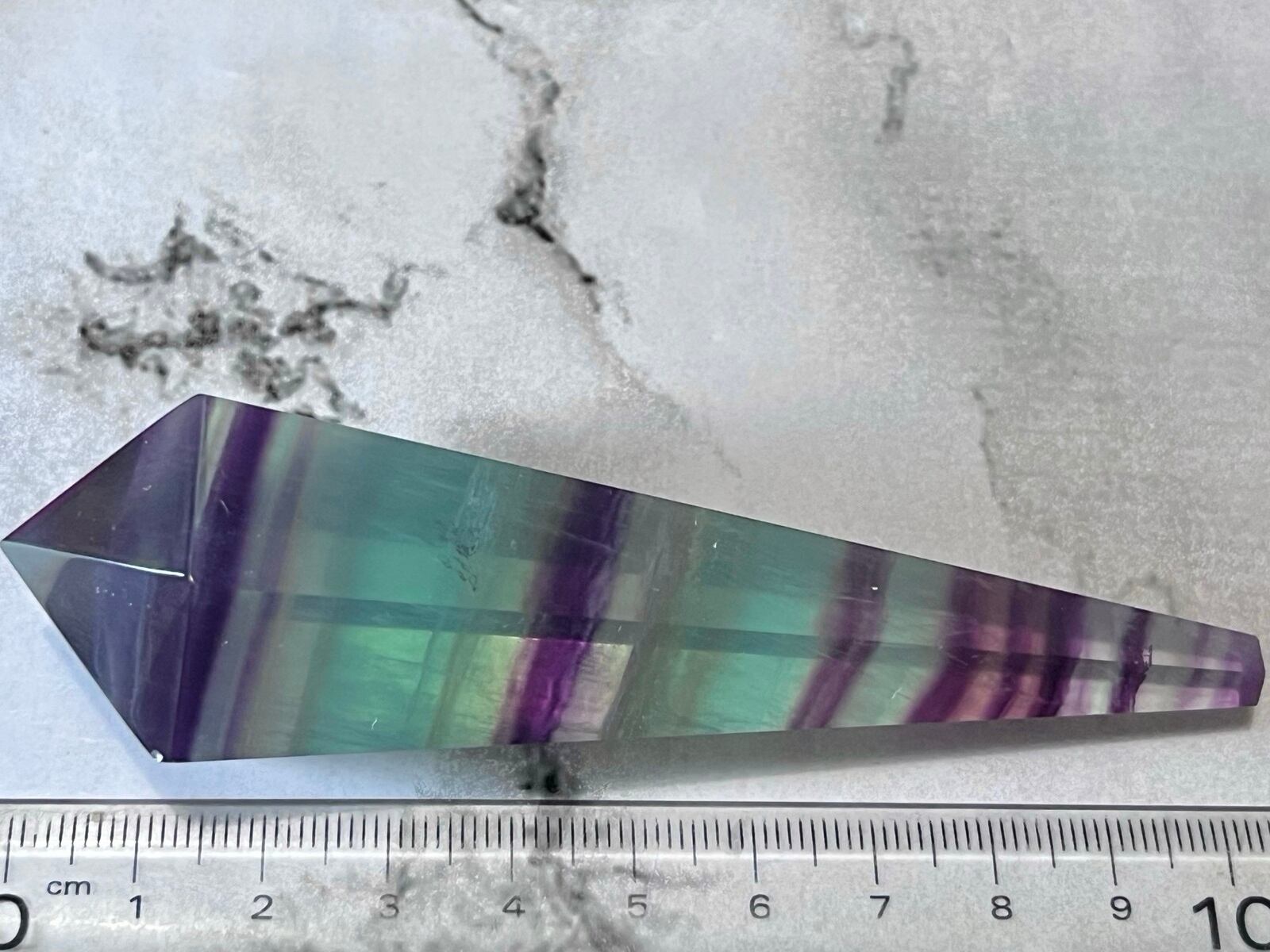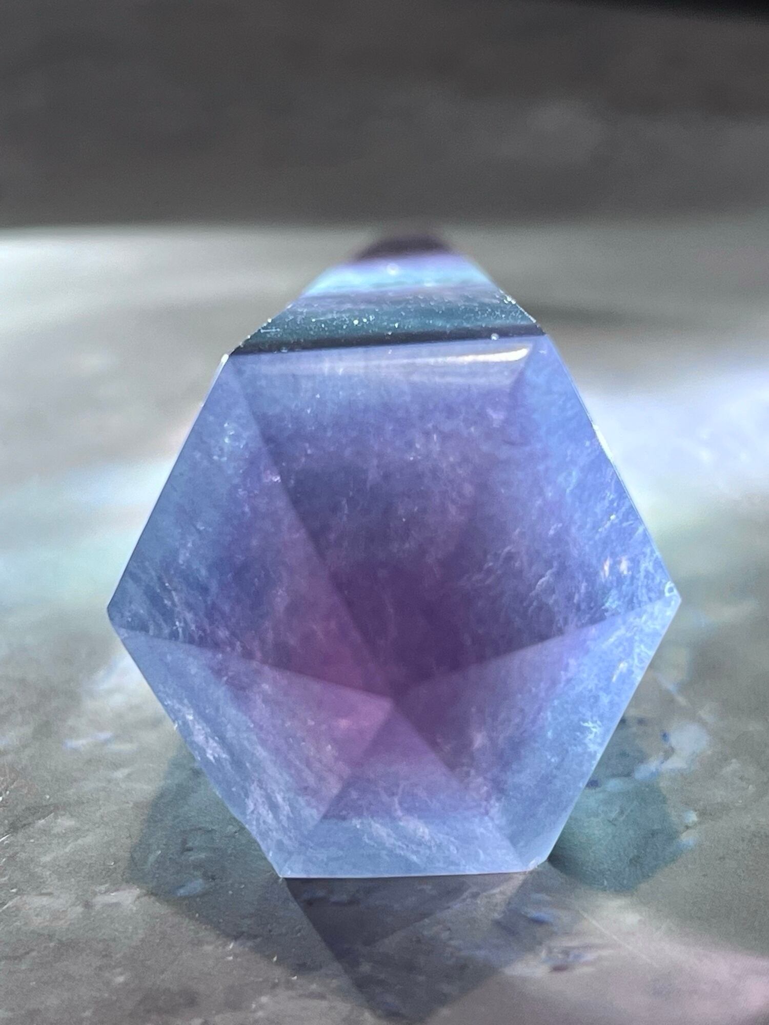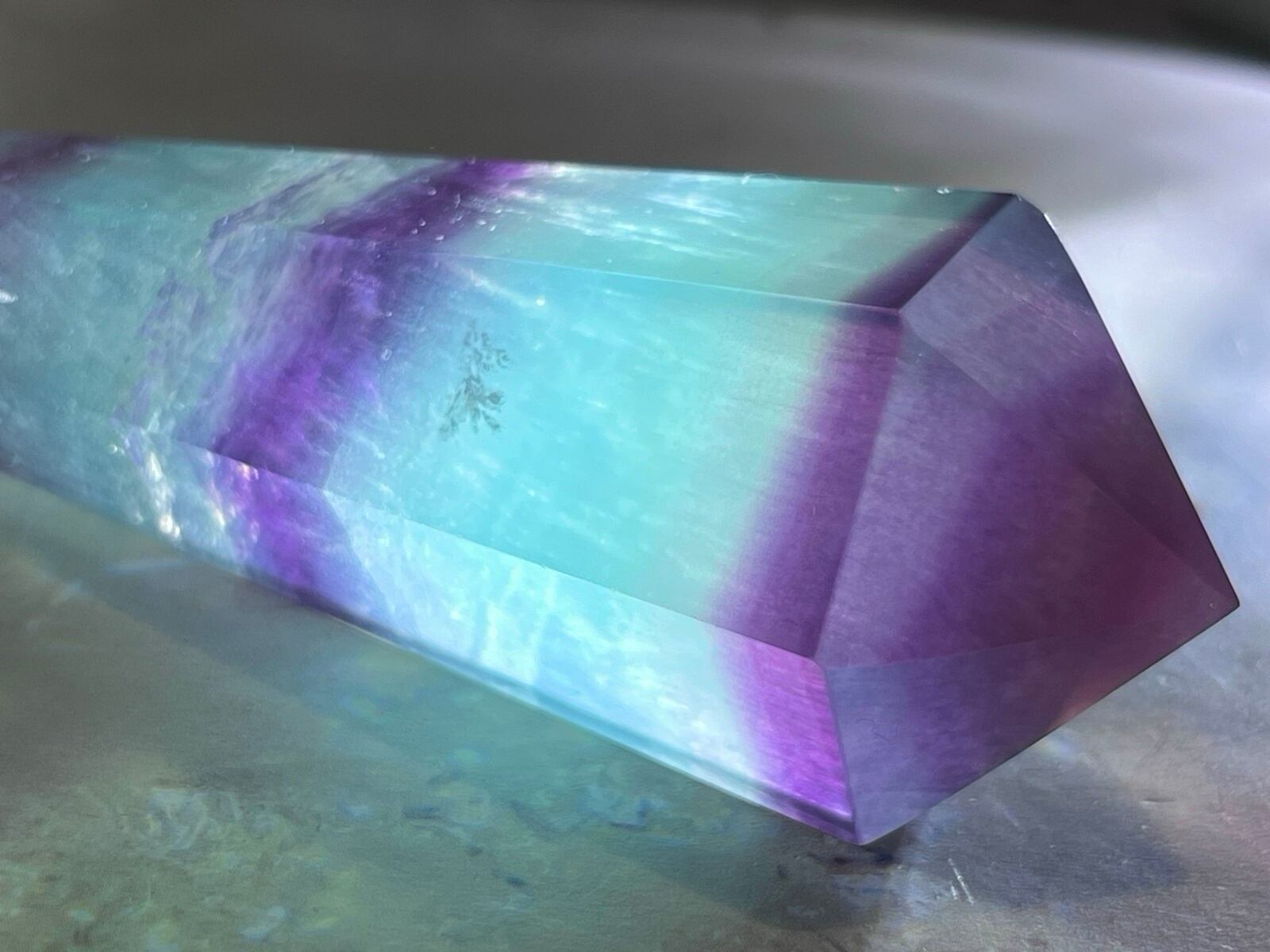 エメラルドグリーンとパープルが織りなすグラデーションが美しい、マルチカラーフローライトのポイントです❁⃘*.゜