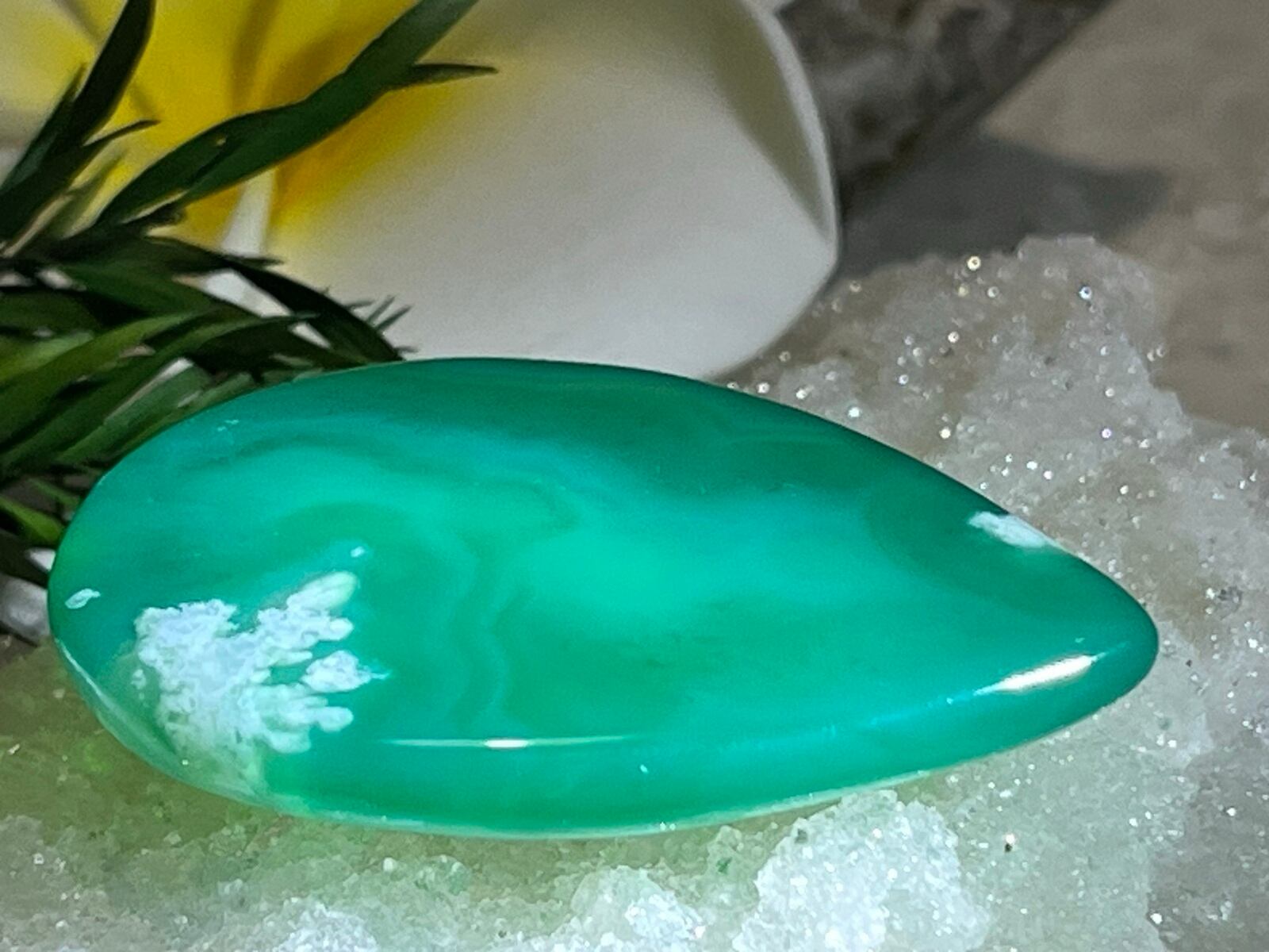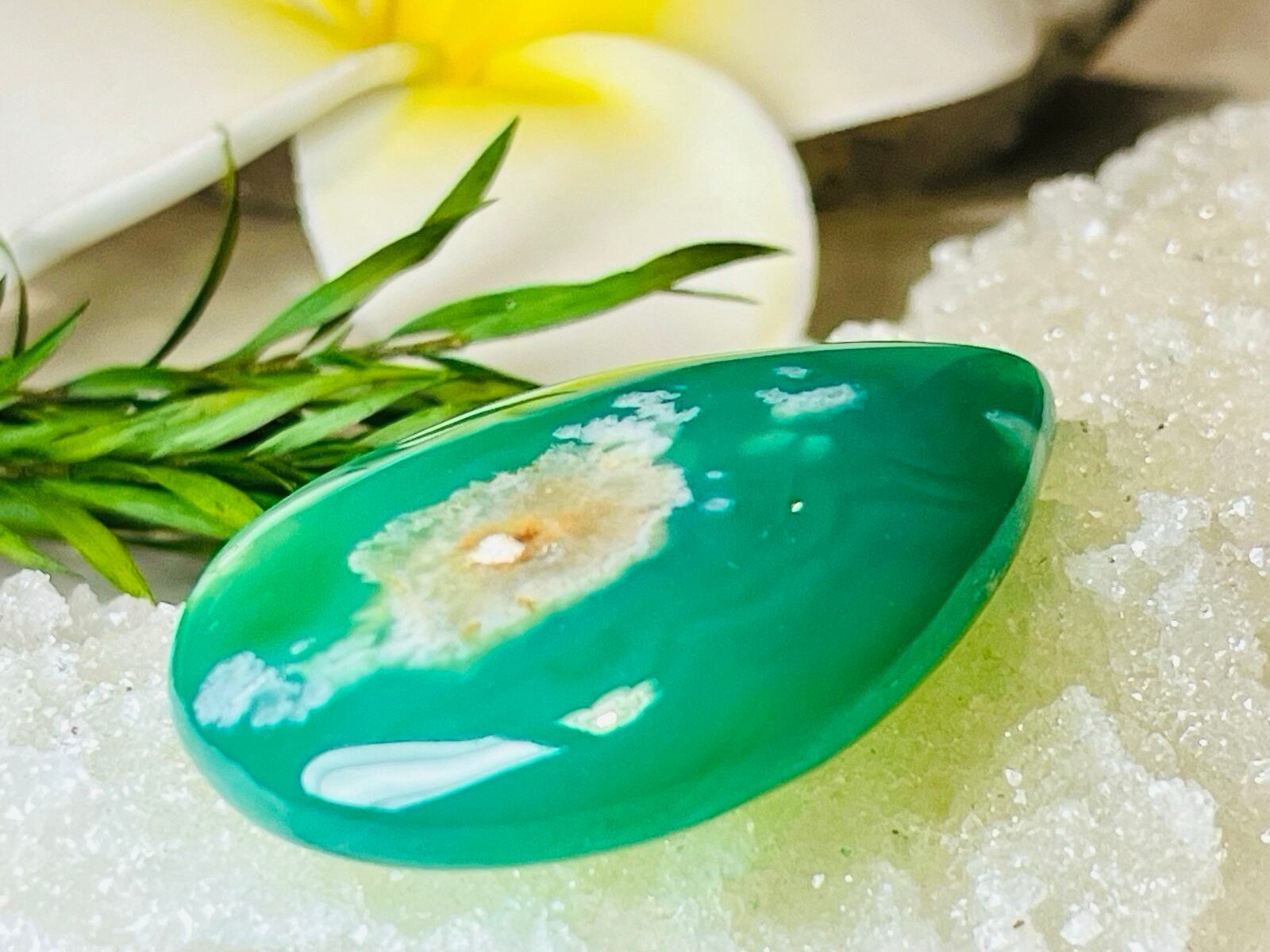つるんとした光沢の桜めのうをグリーンベースに染色したルースです。
