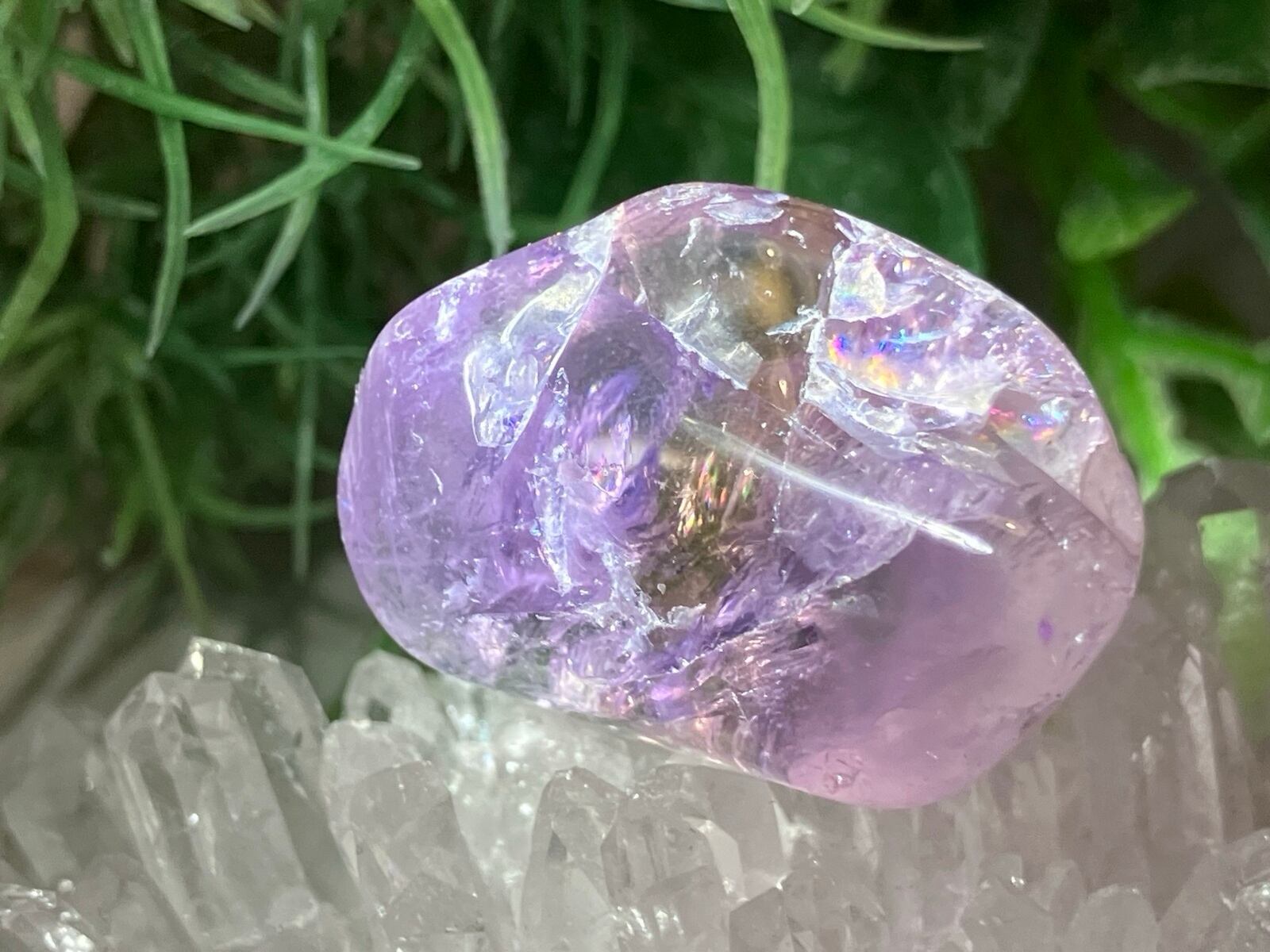 光の加減によって綺麗なレインボーが現れるアメトリンのタンブルです✨