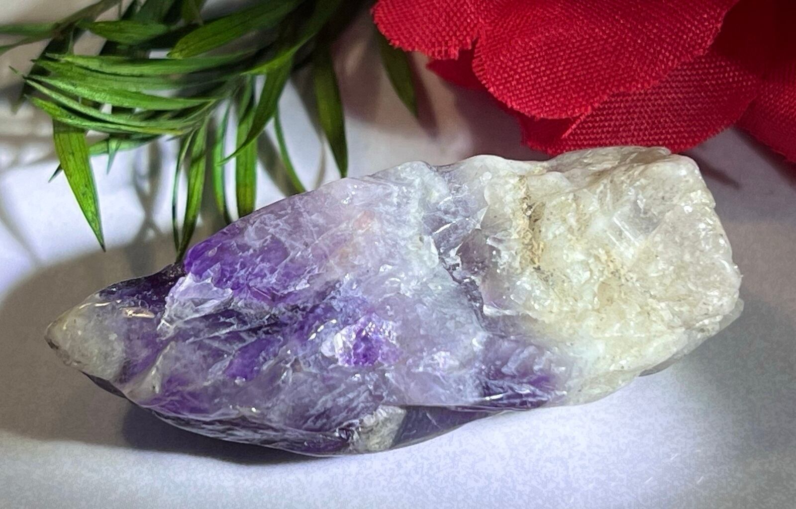 流通量が少ないため、希少とされているシェブロンアメジストのラフストーンです。