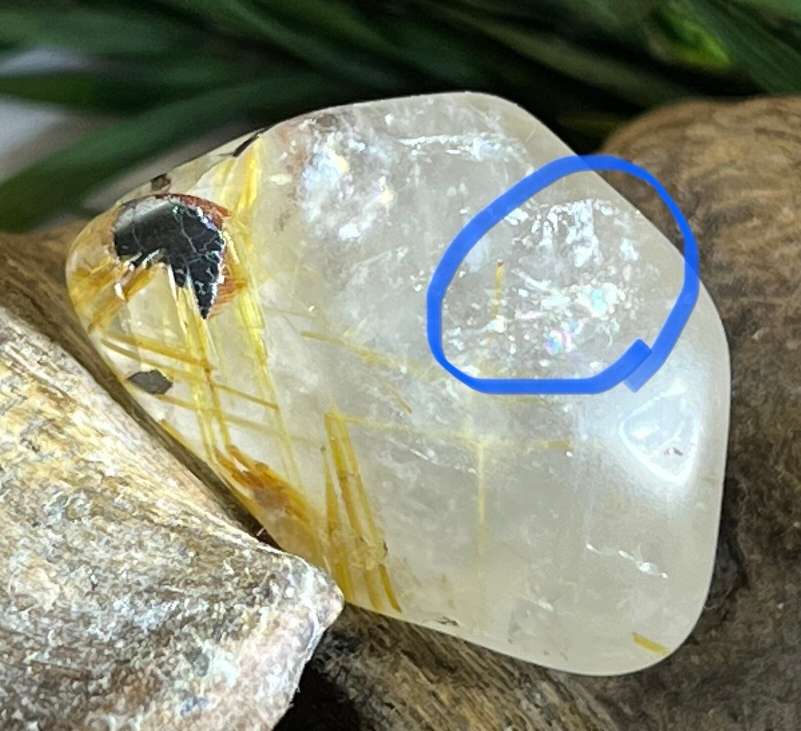 太いタイチンルチルが内包されており、ライトを当てる角度によって綺麗な虹が出る箇所もあります❁⃘*.゜