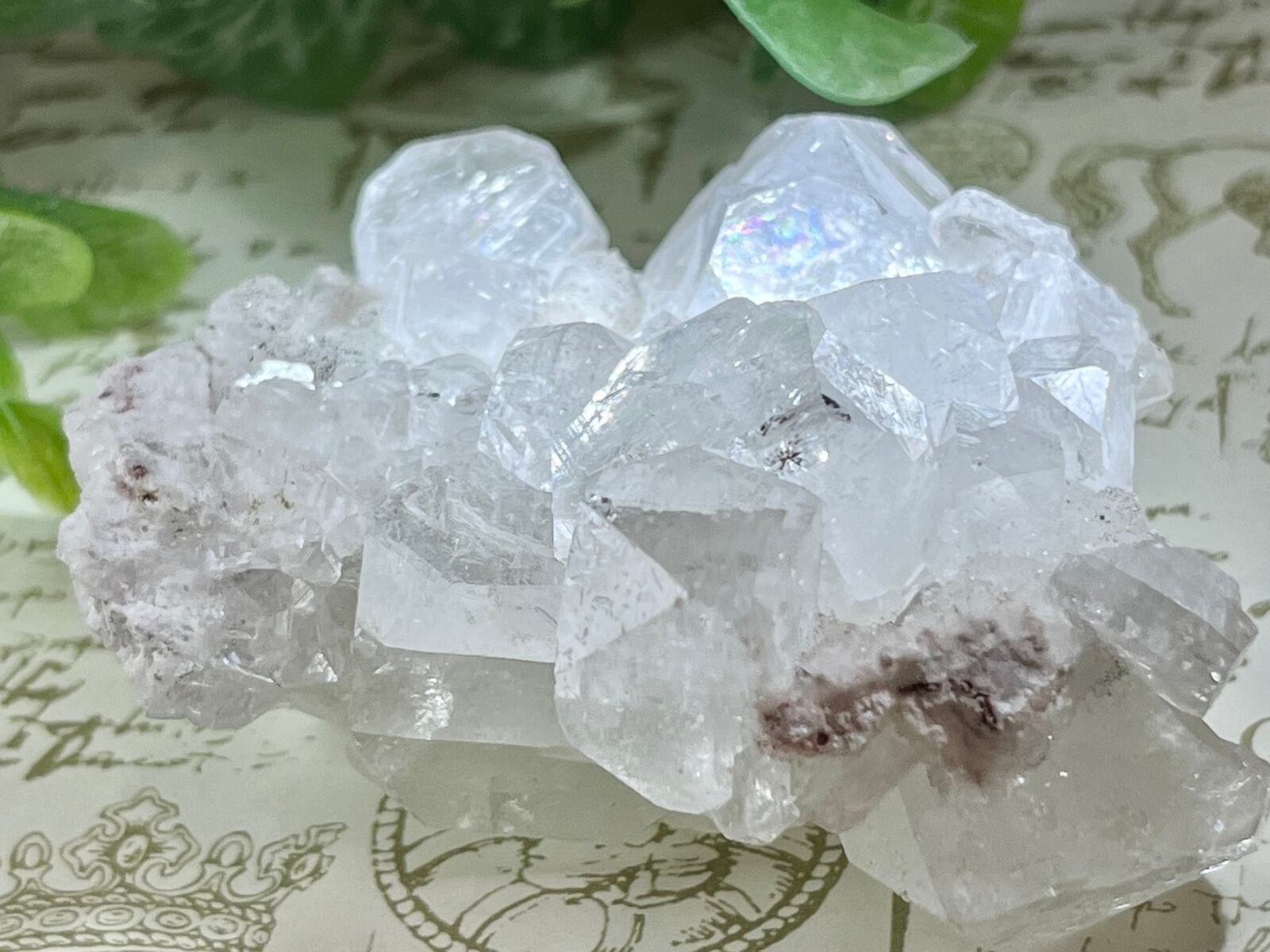 強い光を当てると壮麗なレインボーがいくつもの箇所で煌めくアポフィライトのクラスターです- ̗̀꒰ঌ໒꒱ ̖́-