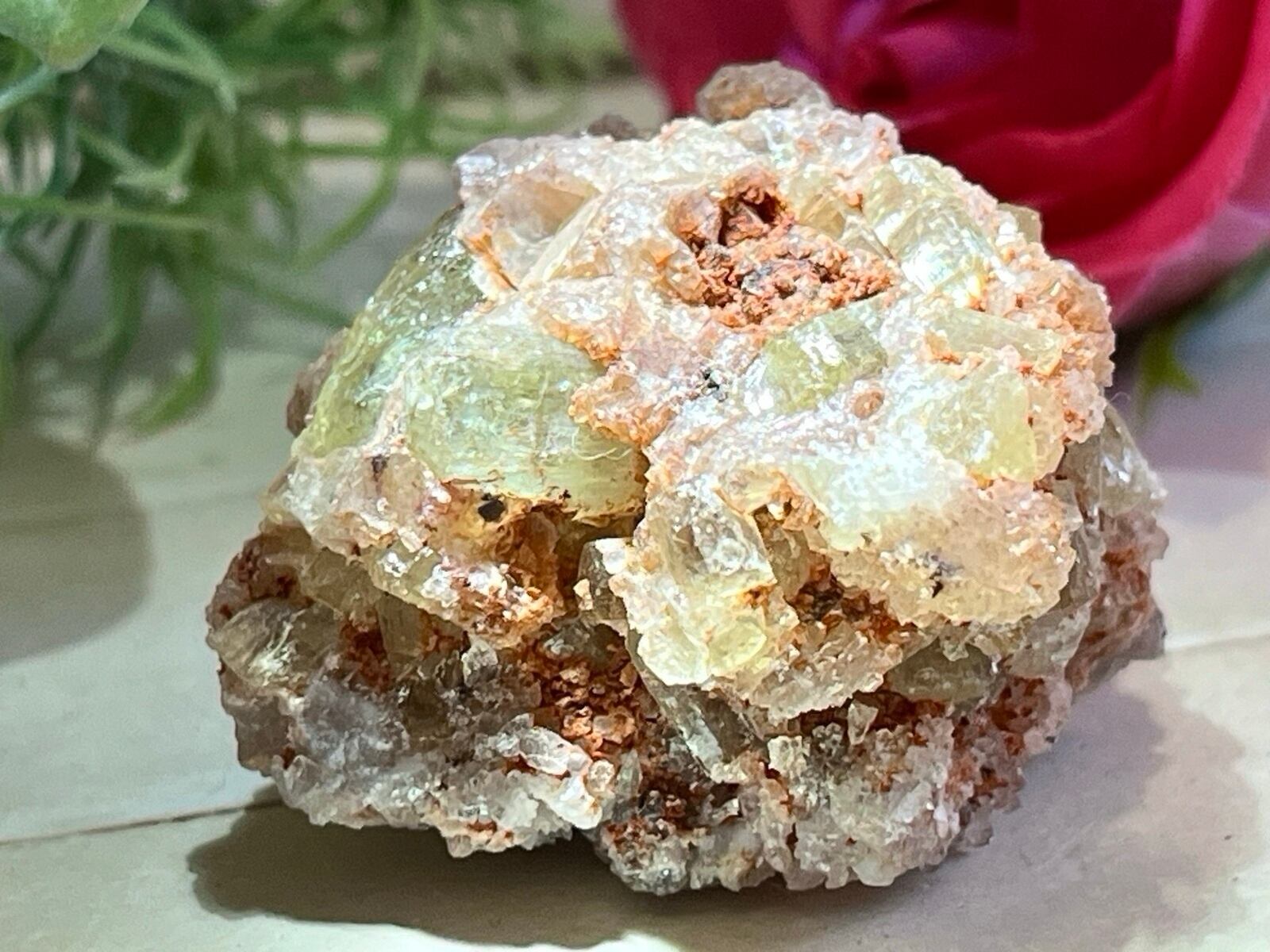 こちらはアパタイトの中でも貴重なイエローカラー。母岩から大小様々な結晶がぴょこぴょこと顔を出していて、とても可愛いです✿