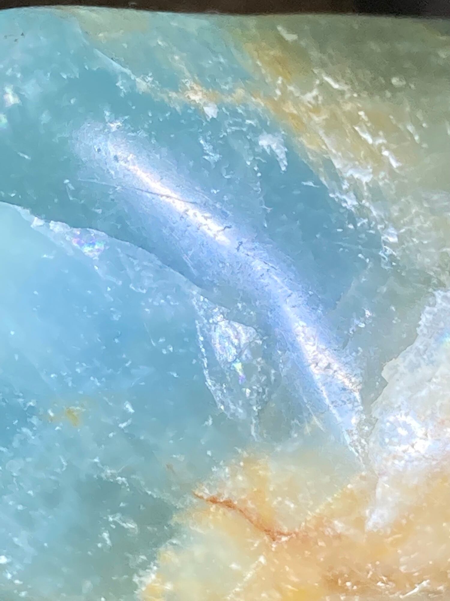 ライトを当てる角度によって側面にほんのりレインボーが現れるブルーカルサイトのタンブルです❁⃘*.゜