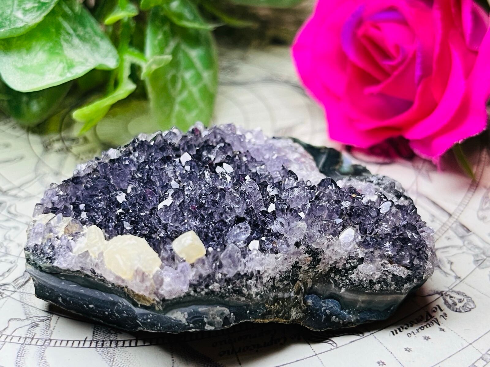 カルサイト共生 ギャラクシー ブラックアメジスト クラスター 原石 ラフストーン