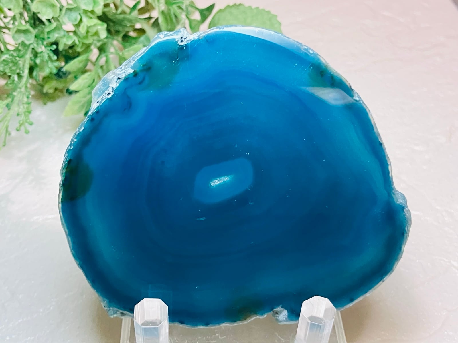 深いエジプシャンブルーに天然のアゲート(瑪瑙)を染色したグラフィカル スライス カットコースターです。