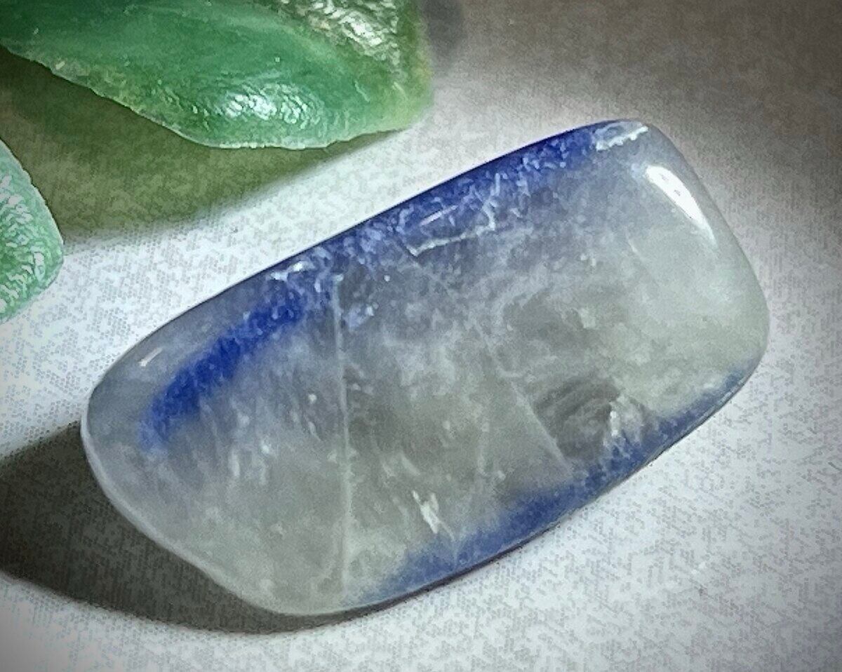 コバルトブルーの海が広がるデュモルチェライトインクォーツのタンブルです✨