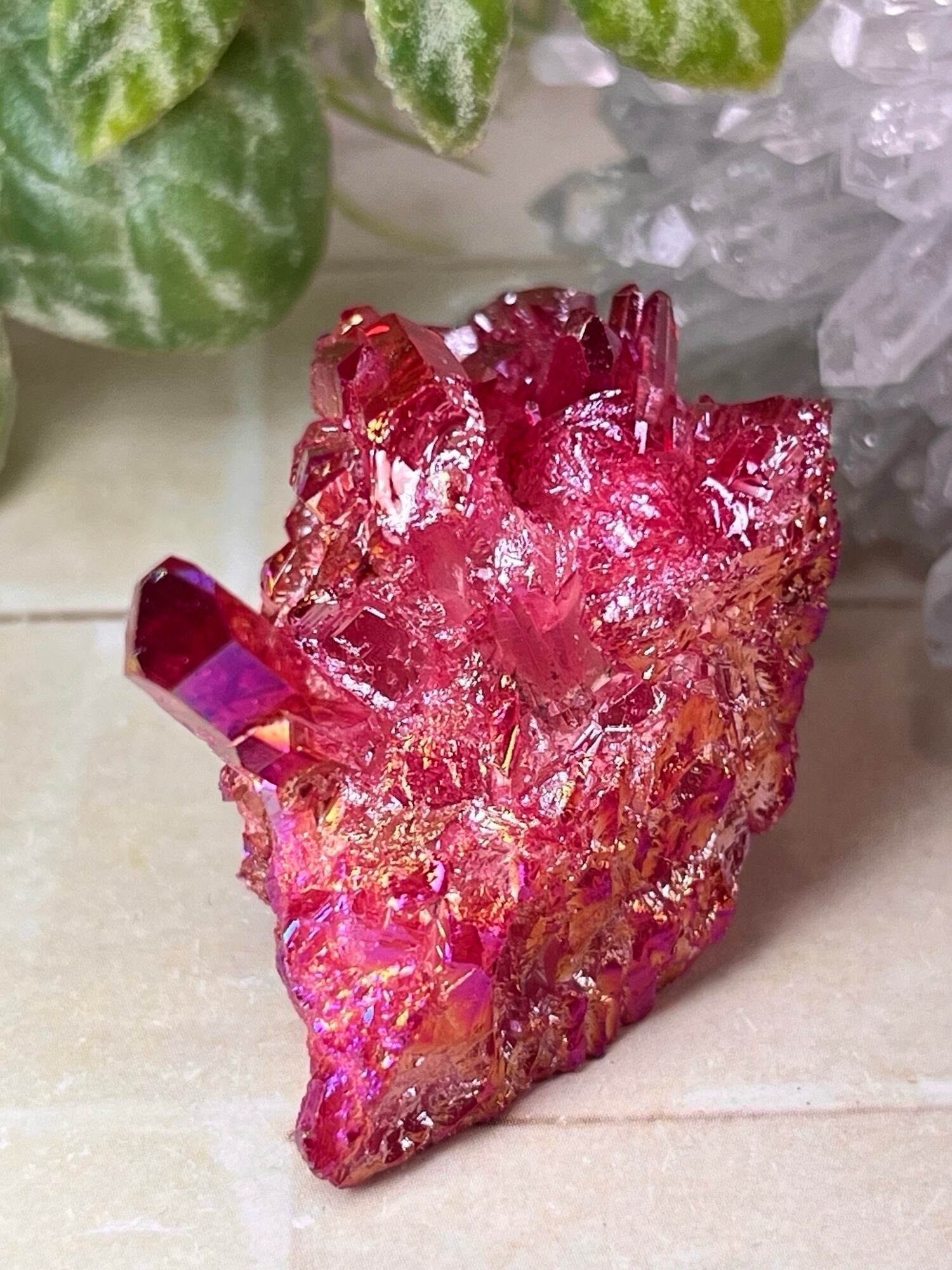 七色の夢✨ レッド オーラ水晶 クリスタル クラスター 原石