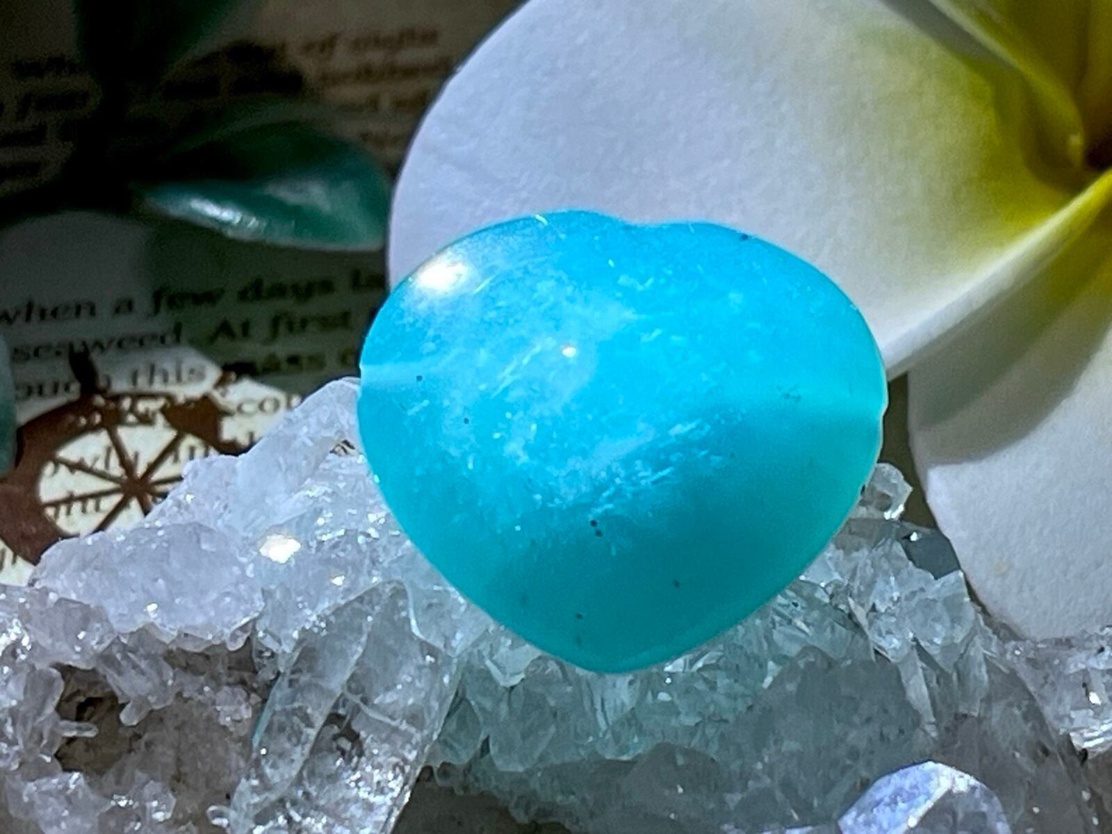 希望の象徴✨ アマゾナイトシリカ 天河石 原石 ハート型 穴あきパーツ