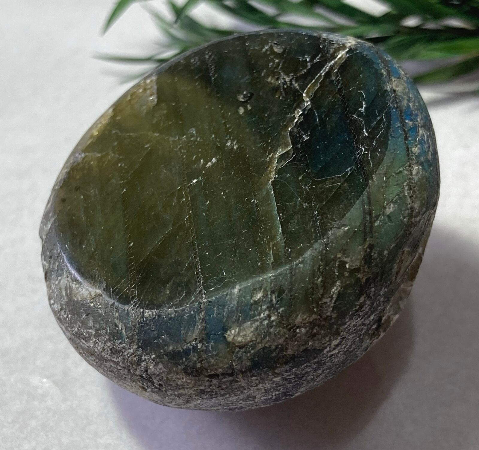 美しいオリーブ色のラブラドライトの一面が磨かれた原石です˚✧₊⁎