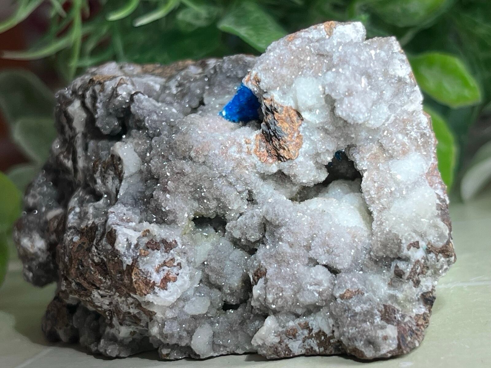 キラキラとした大きめな母岩に放射状の結晶が煌めくインド産ペンタゴナイトの原石です。