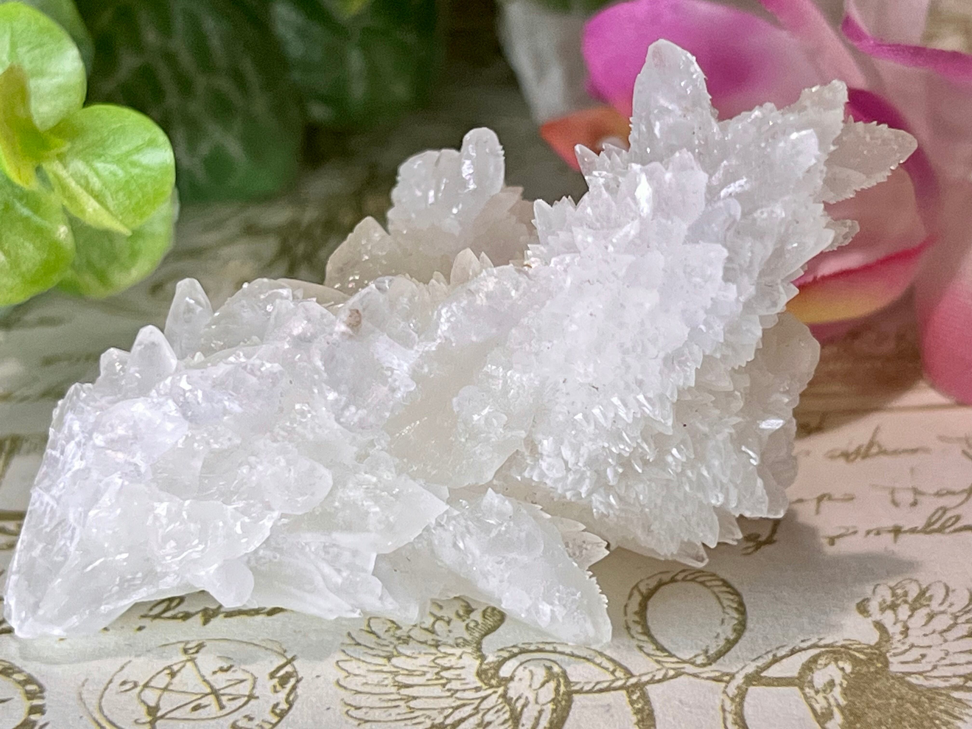 氷の結晶のようなホワイトアラゴナイトのクラスターです✨