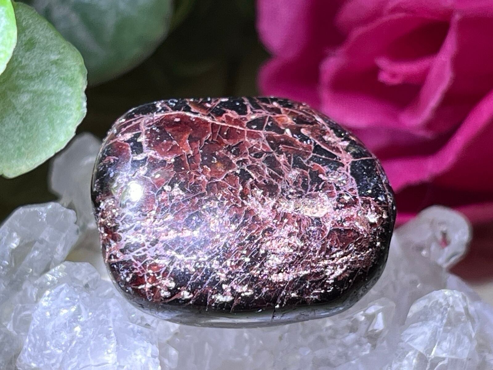 ライトを当てると鮮やかに発色し、小粒で可愛らしいガーネット(柘榴石)のタンブルです✨
