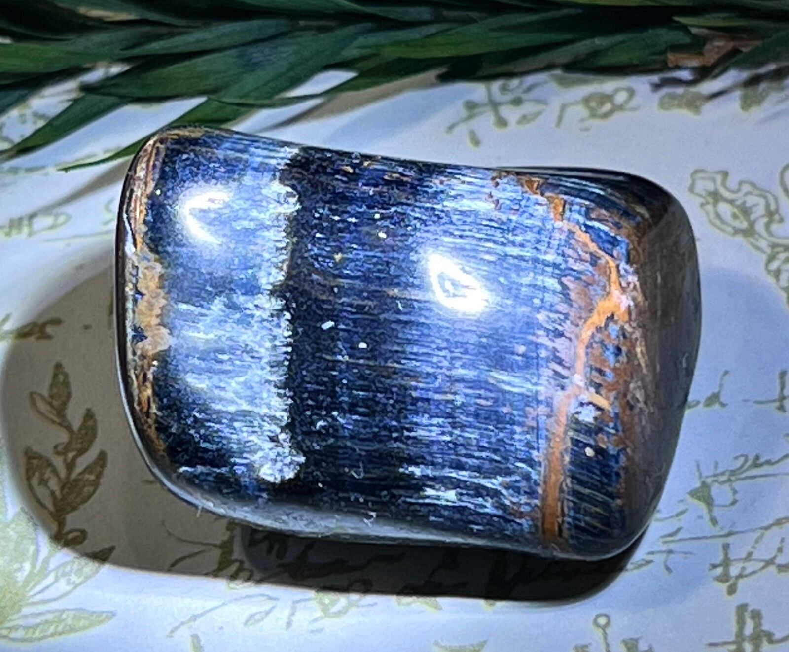 真夜中の海に月明かりが落ちているような神秘的な輝きのホークアイのタンブルです✨