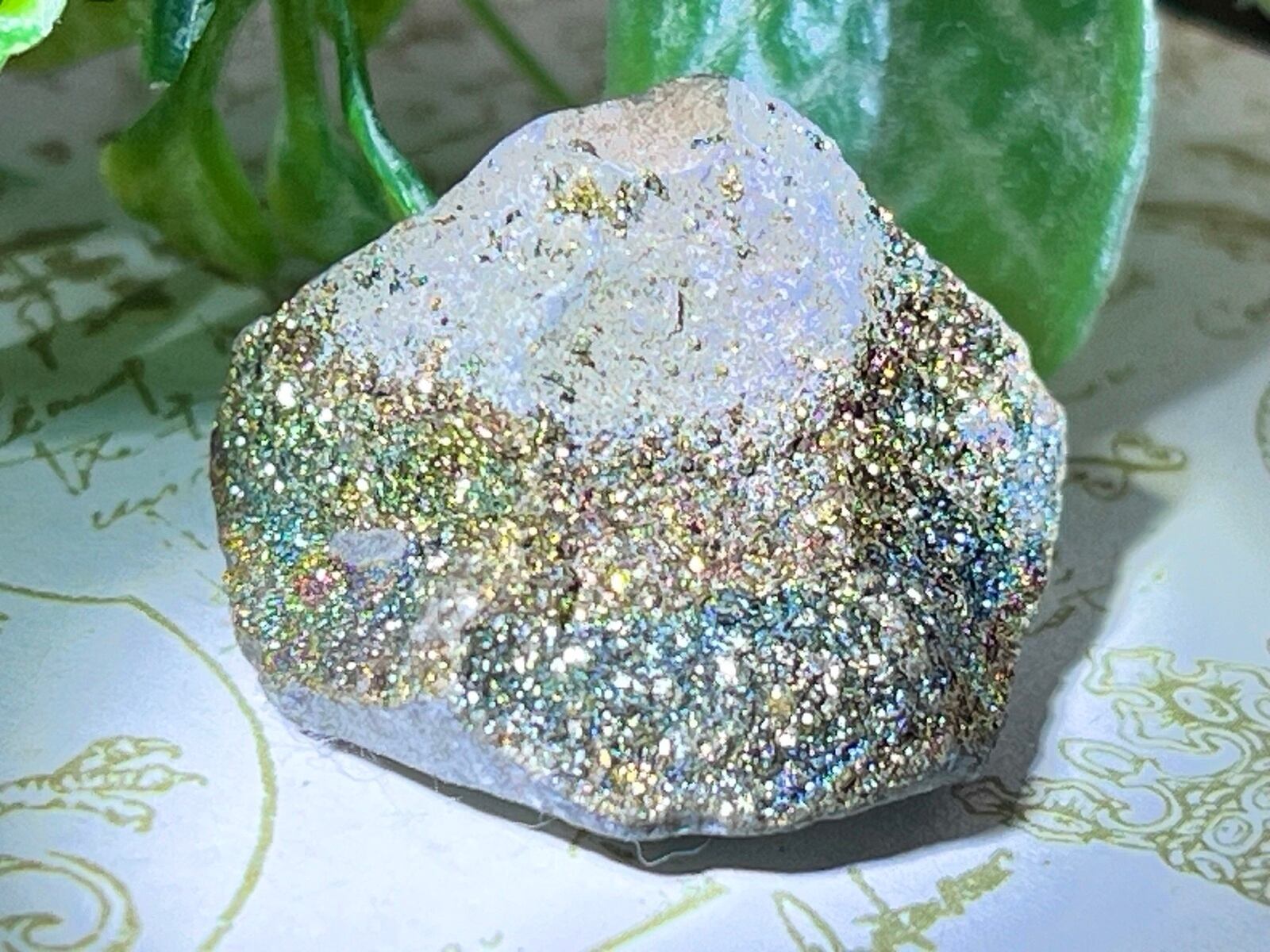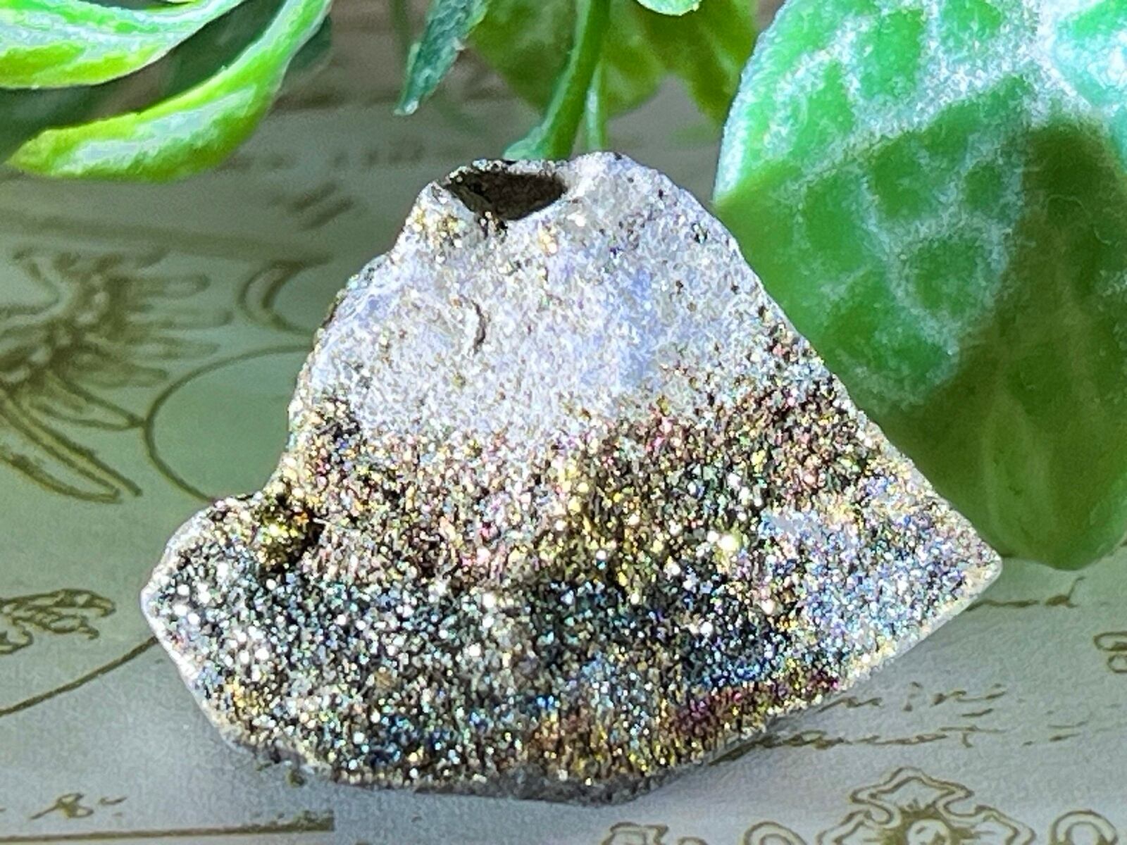 ロシアのボルガ川で産出された、パイライトの微細な結晶の上にできた酸化被膜により虹色が現れた希少な原石です✨