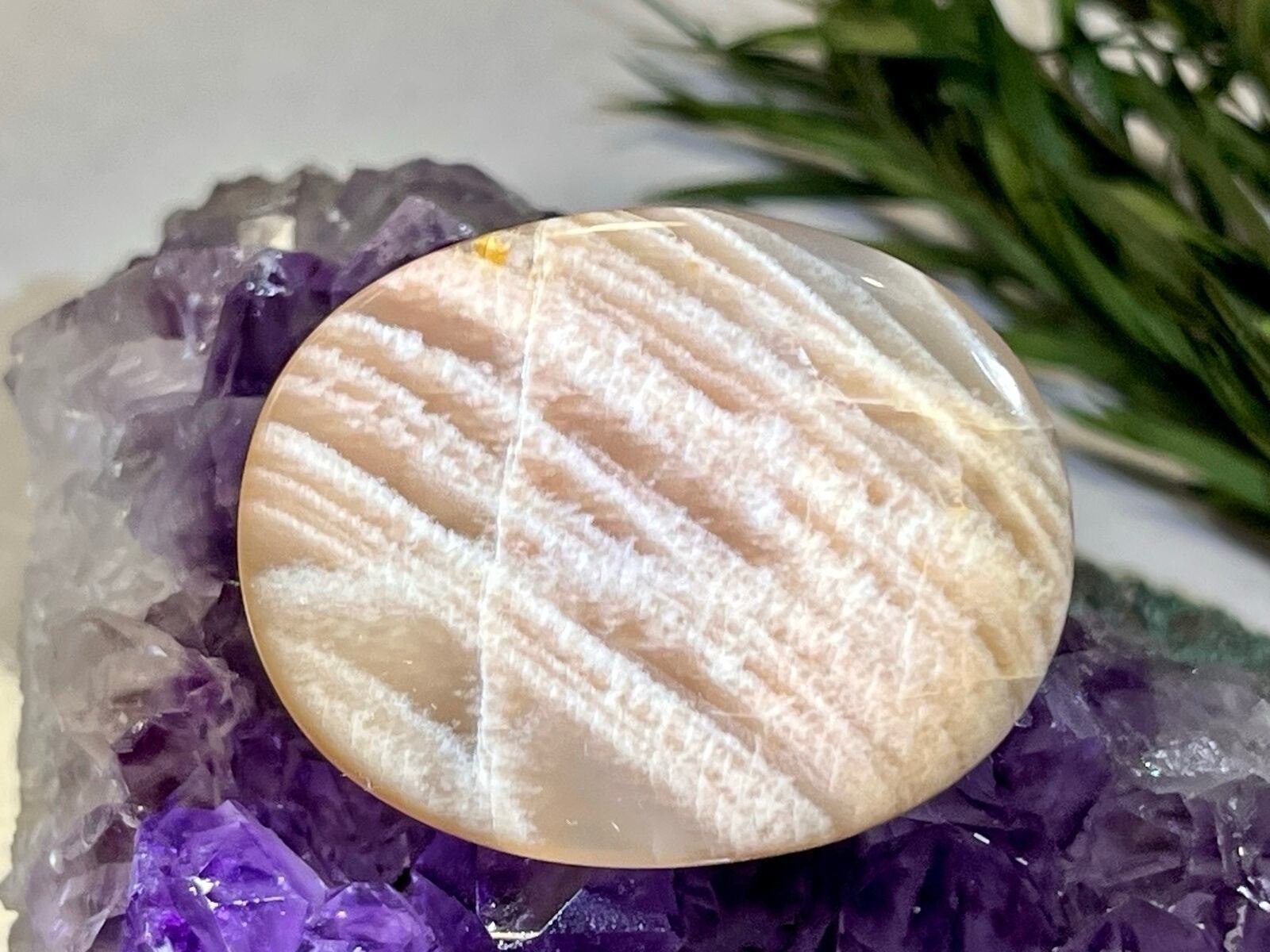 夕焼け空のようなお色に羽根のような幻想的な模様が入ったムーンストーンのルースです✨
