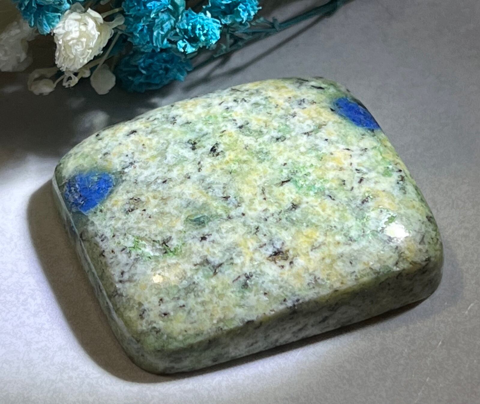 アズライトとグラナイトが共生し、美しいユニークな模様を作り出すK2ストーンの四角いルースです✨