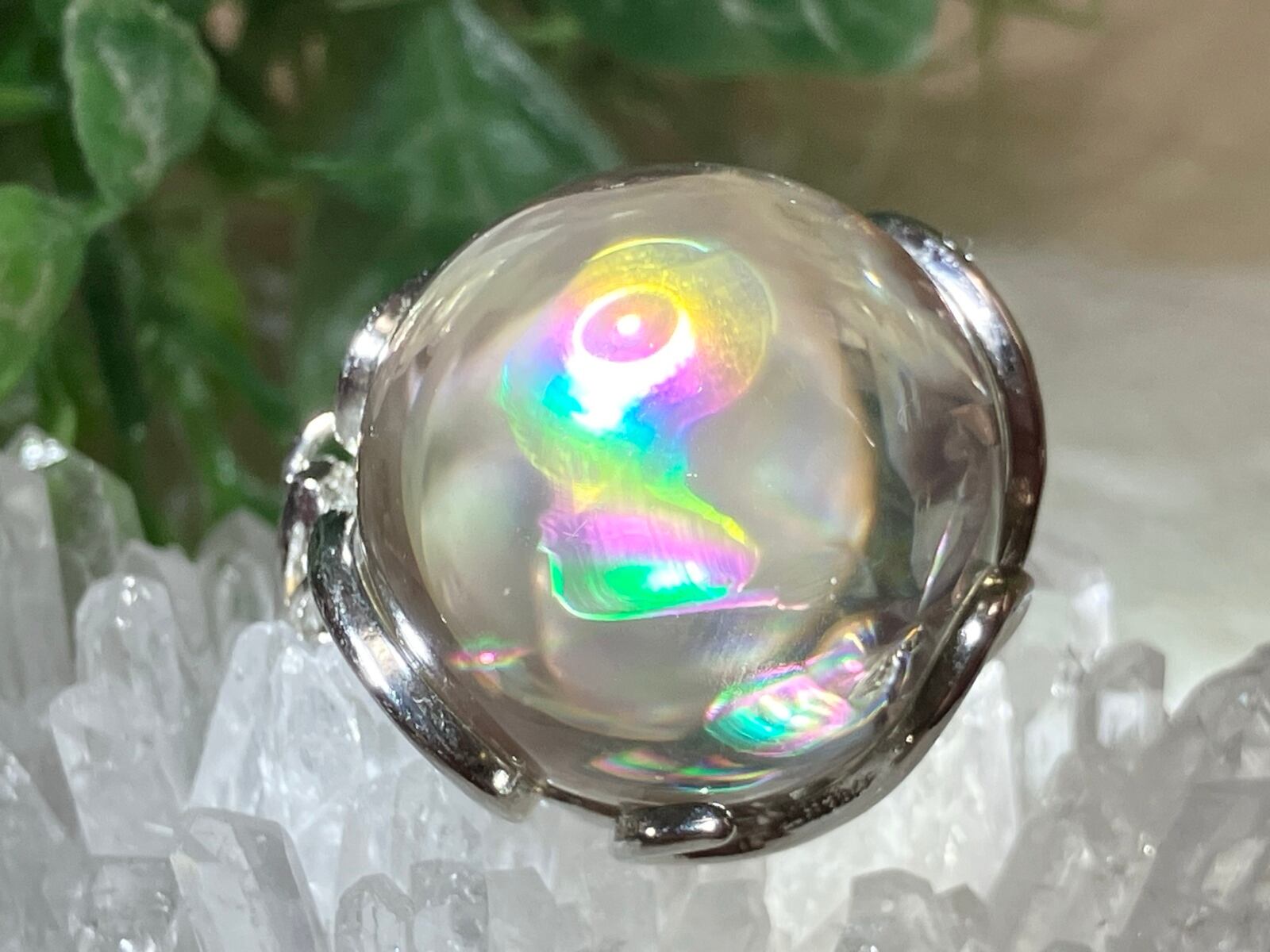 レインボークォーツ クリスタル 水晶 スフィア ペンダント トップ 原石