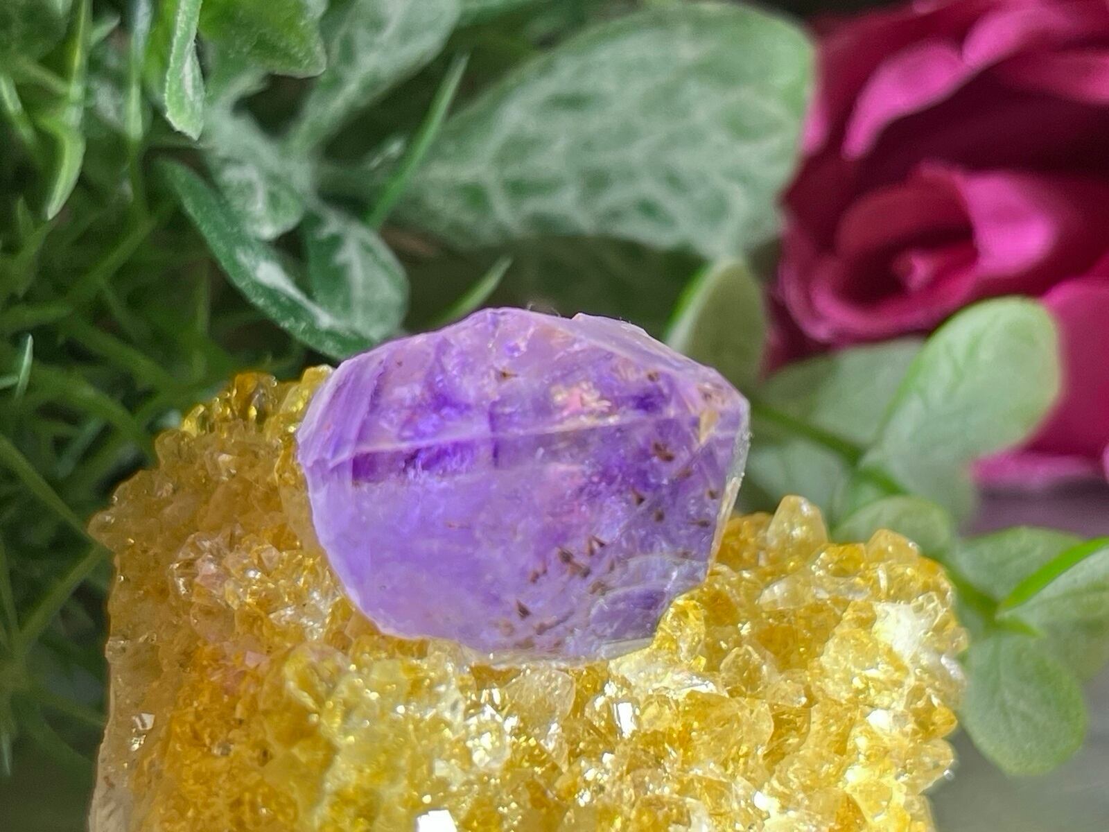 金粉のようなカコクセナイトが内包されているアメジストのラフストーンです- ̗̀꒰ঌ໒꒱ ̖́-