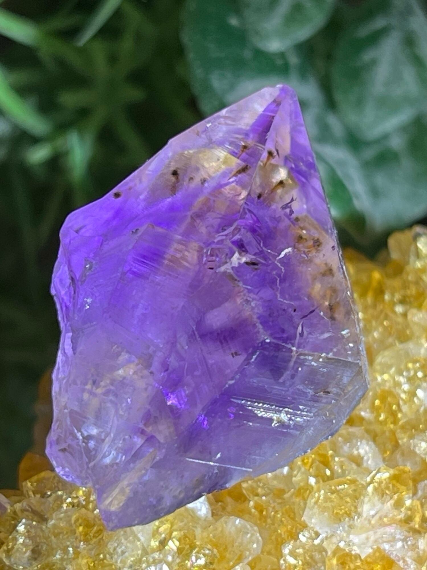 ゴールドカコクセナイト 紫水晶 アメジスト 結晶 原石 ラフストーン