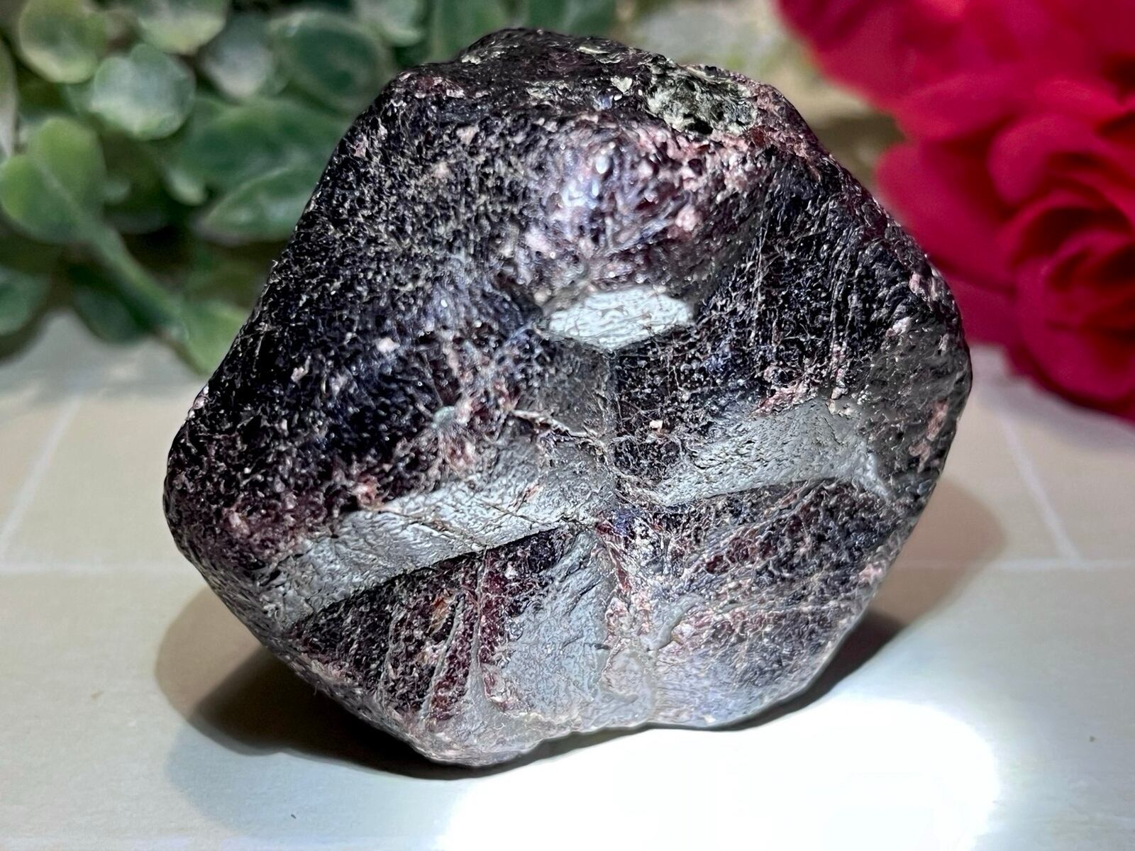 結晶の形を残しつつ、握りやすいようにポリッシュされた握り石にもピッタリな大きさのガーネット(柘榴石)タンブルです。