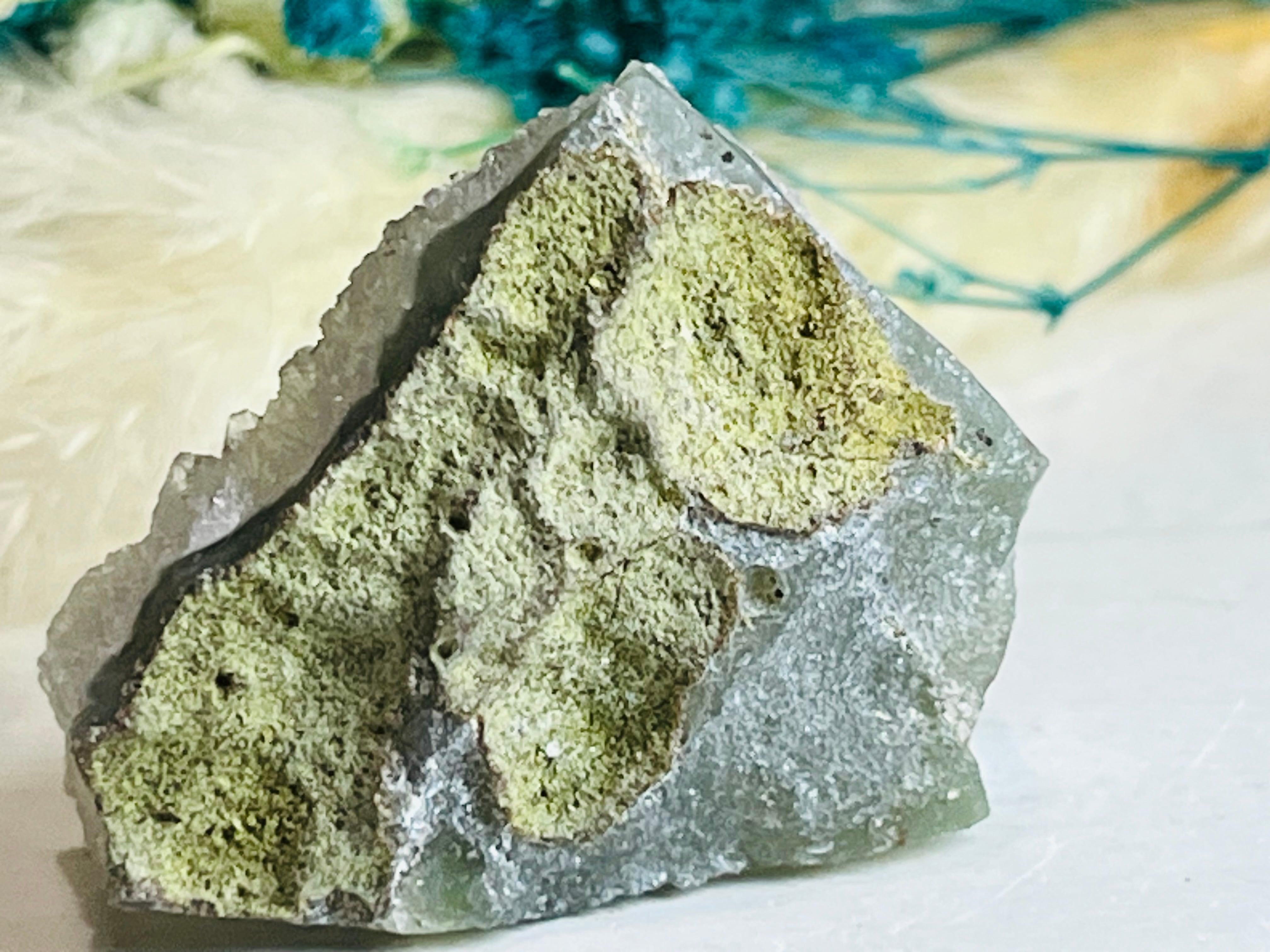 ミルキーウェイ.˖☽ キャルコパライトオンホワイトカルサイト クラスター