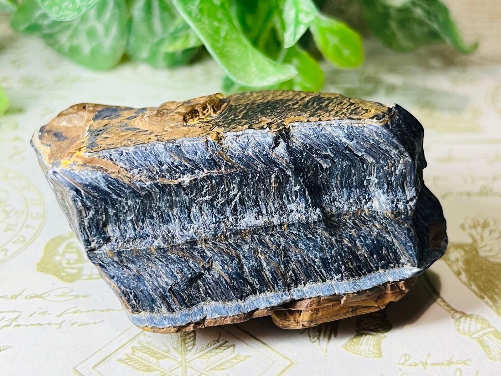 ブルータイガーアイとも呼ばれており、派手なタイガーアイと違いこちらの石は落ち着いたカラーが特徴的なホークアイのラフストーンです✨