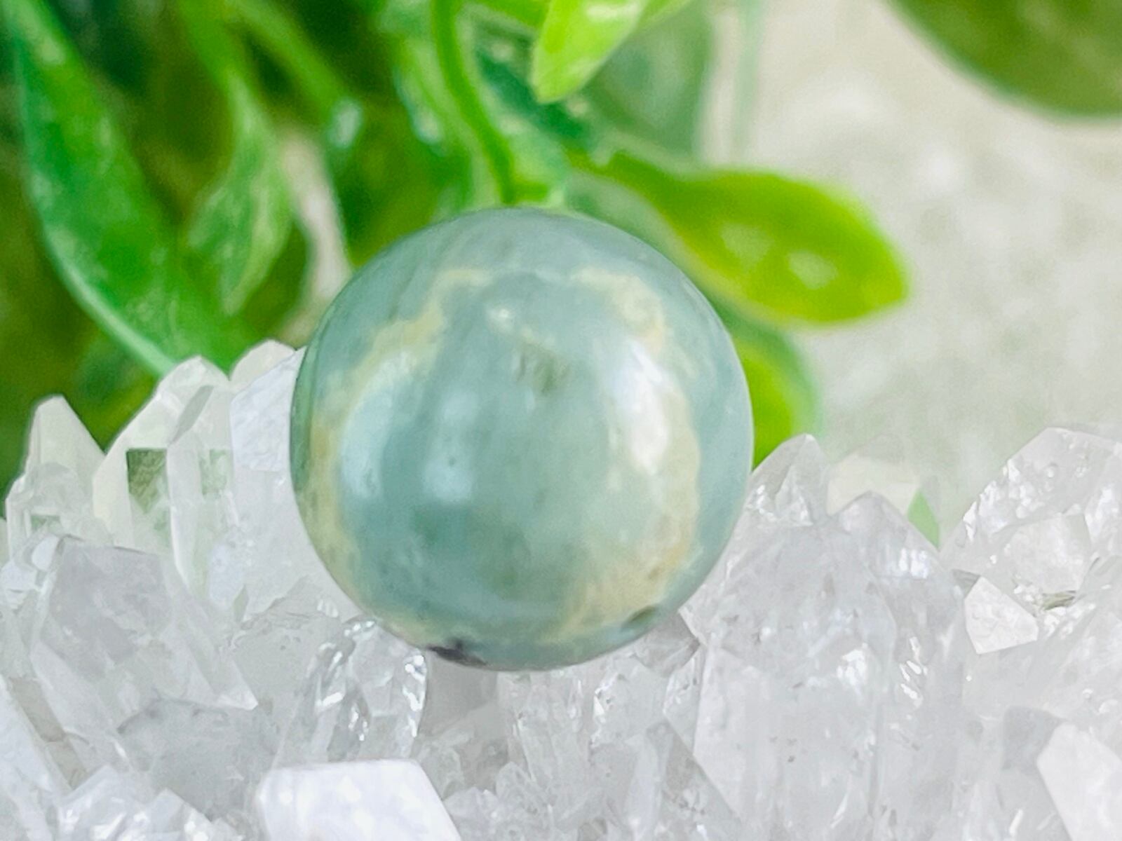 少し青みを帯びた優しい風合いの日高翡翠の穴あき丸玉です❁⃘*.゜