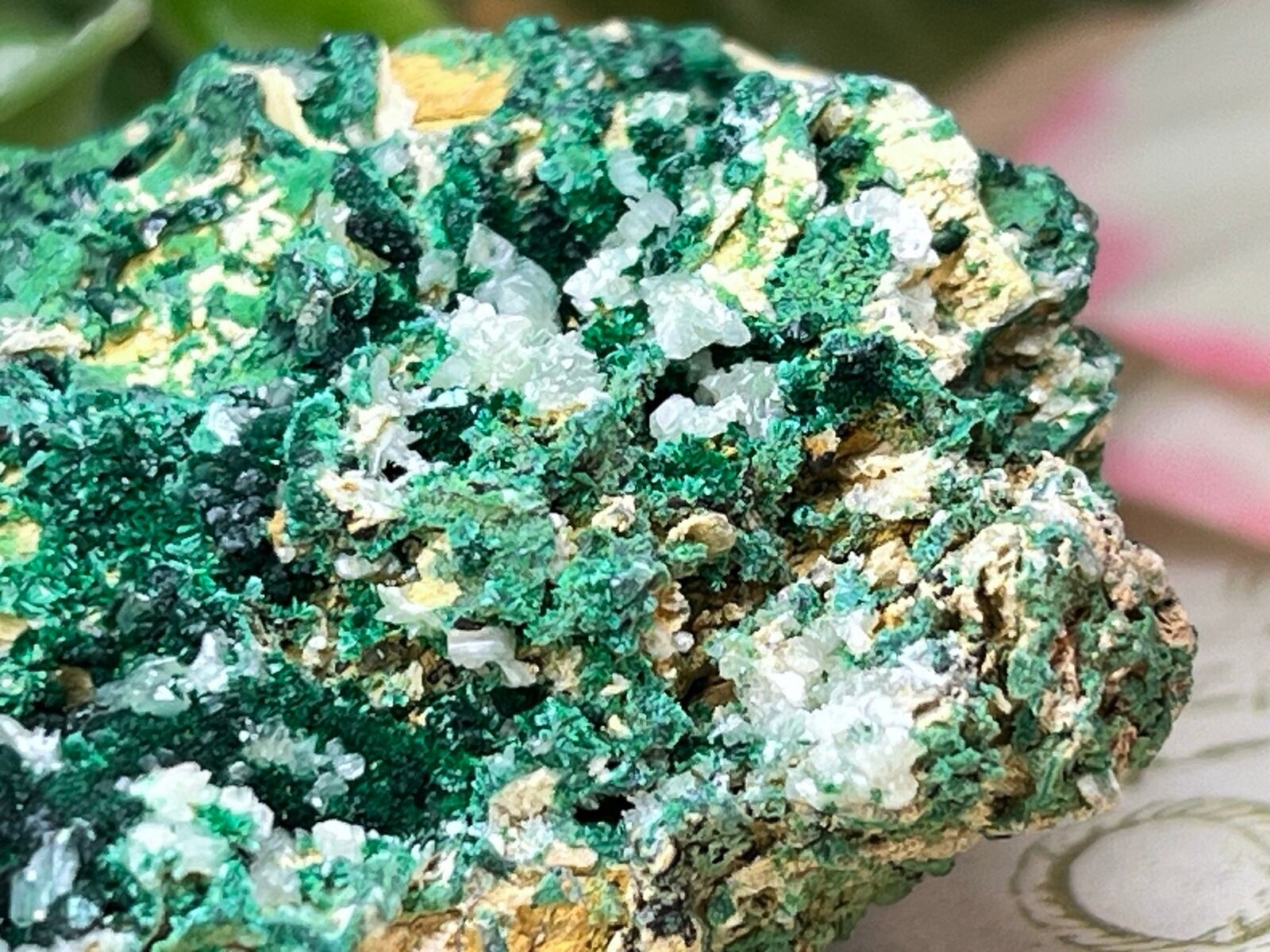 鮮やかなモスグリーンで、とても優しい雰囲気のマラカイト原石です(*´꒳`*)❁⃘*.゜