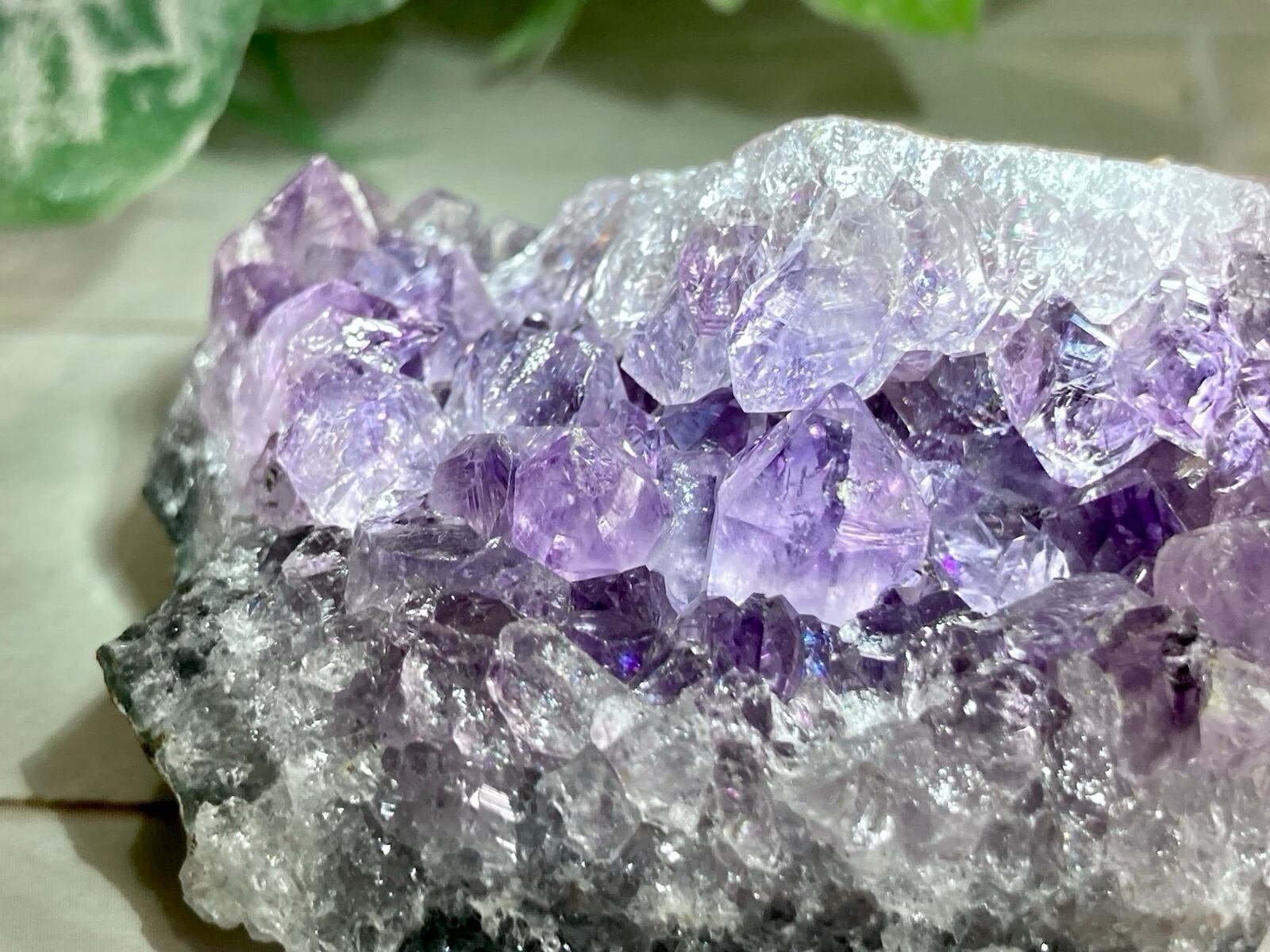 カルサイト共生 レインボー アメジスト クラスター 原石 紫水晶