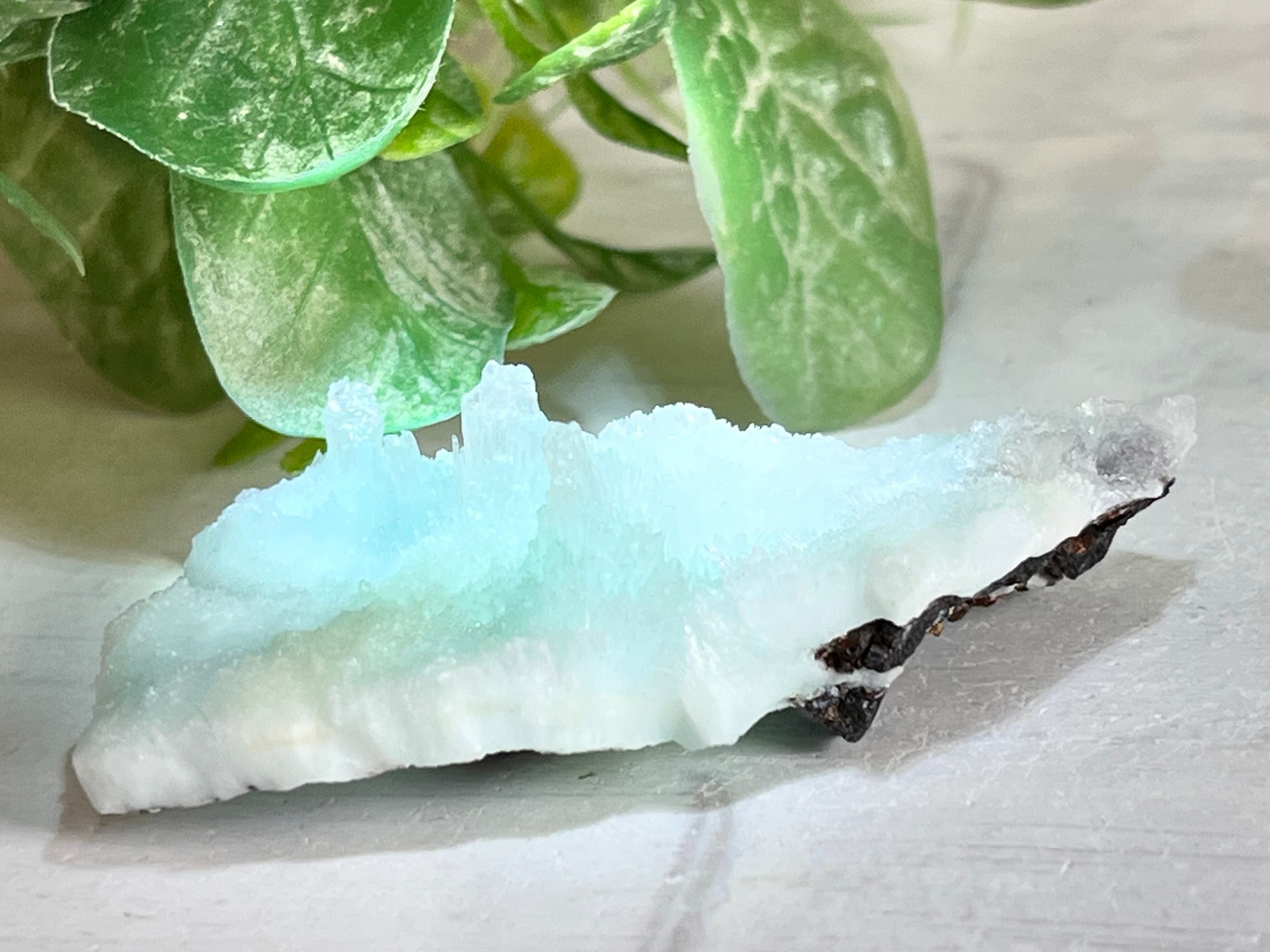 氷穴から氷柱を切り取ったかような、涼やかなブルーアラゴナイトの原石です໒꒱