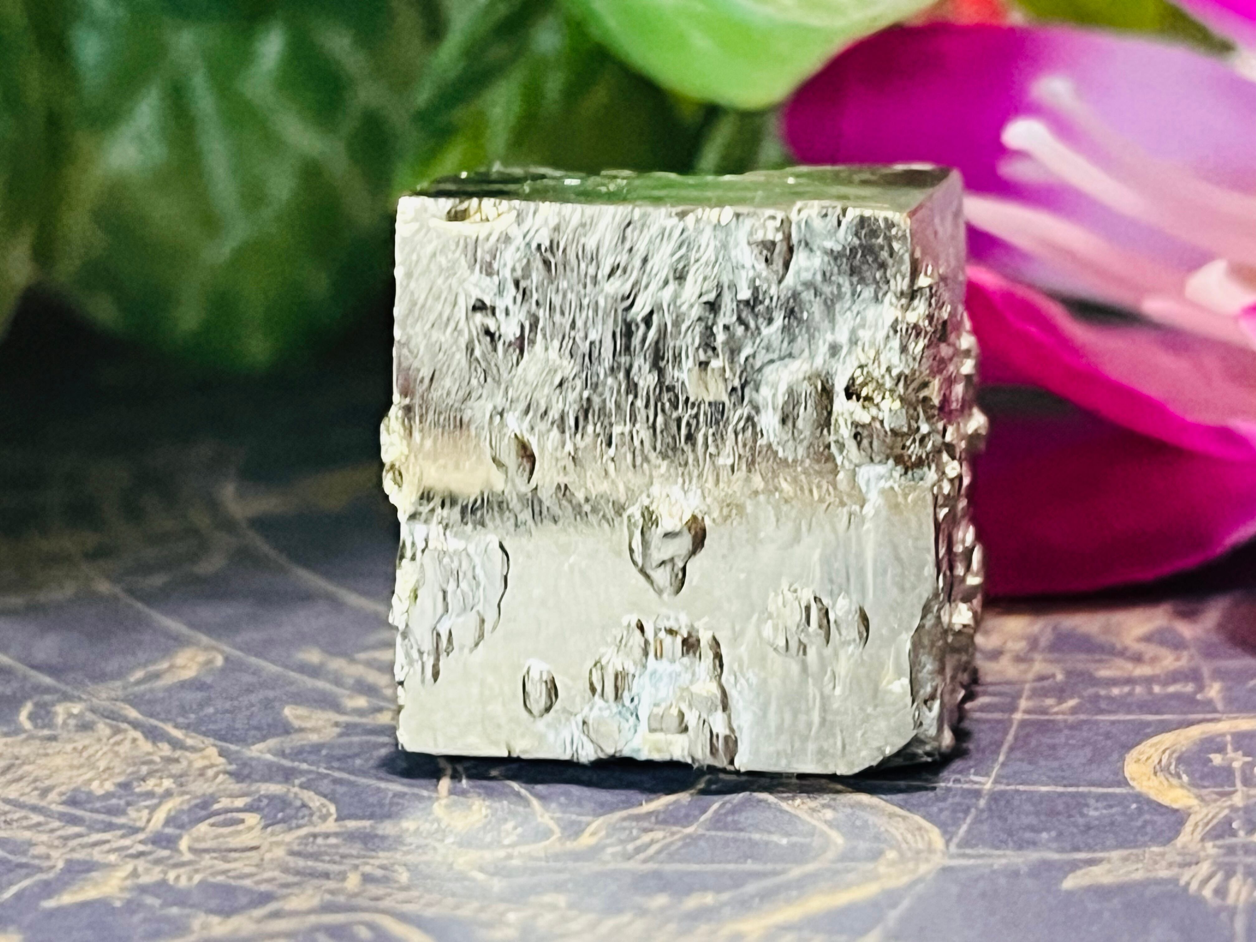 このようにパイライトは形にも意味があり、綺麗なキューブは安定力がとても強く、心身のバランスをとるのに有用です。